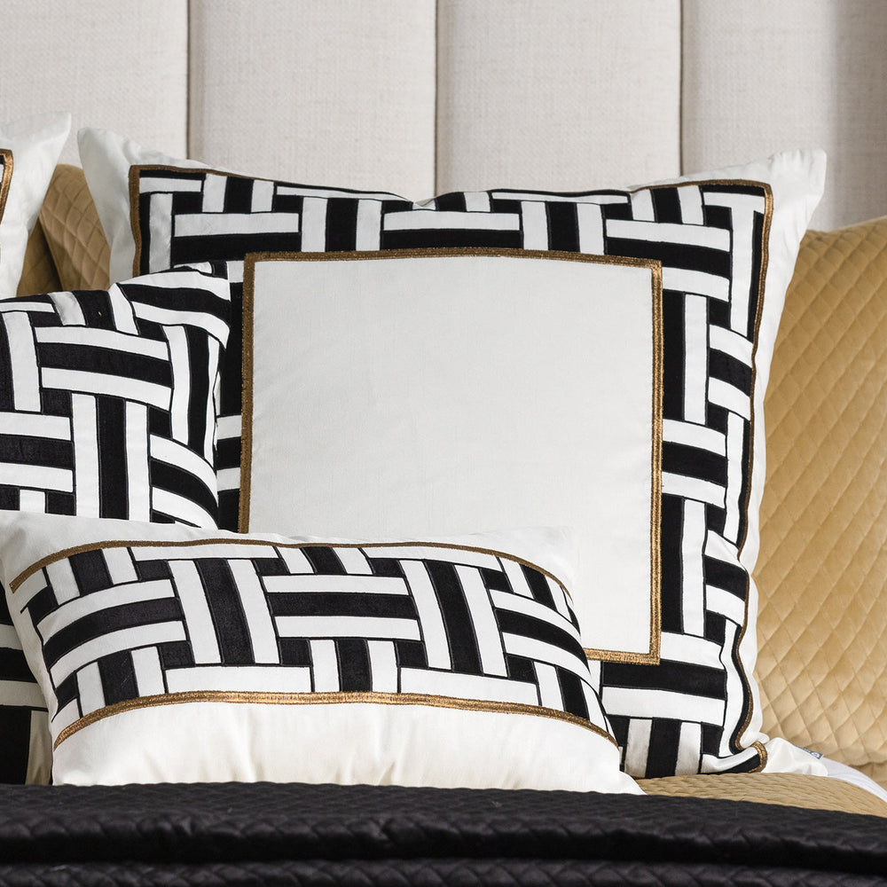 Tommy Ivory/Black/Gold Euro Border Decorative Throw Pillow 24" x 14"