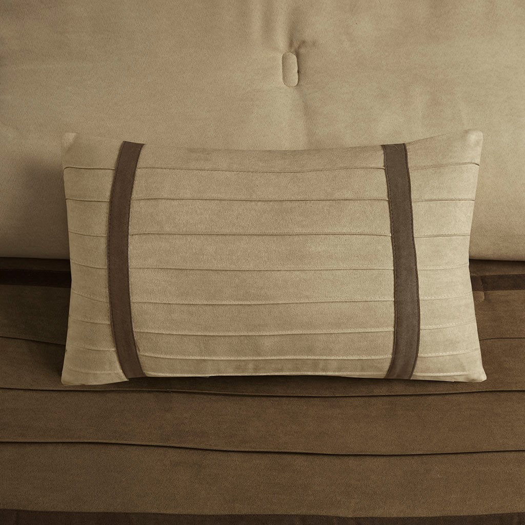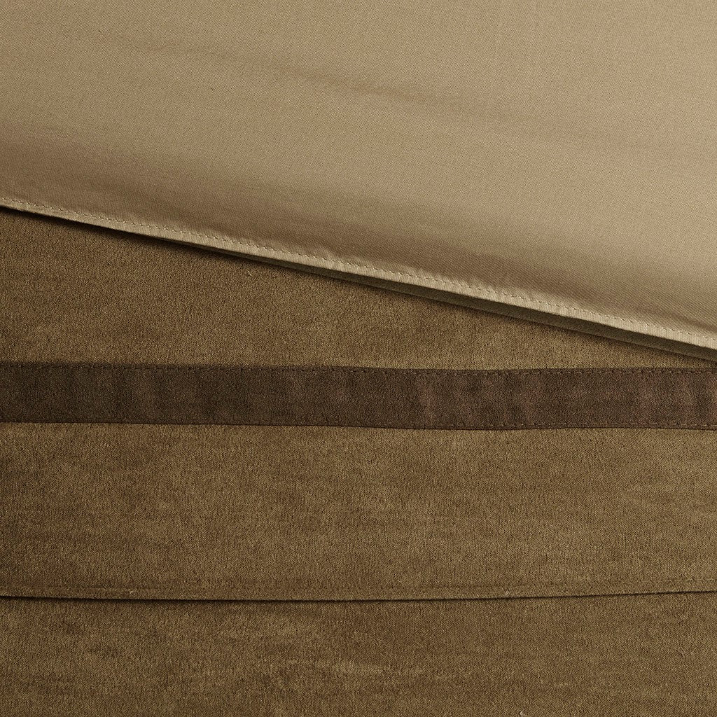 Faux suede face, microfiber back comforter and shams, faux suede bedskirt and pillows