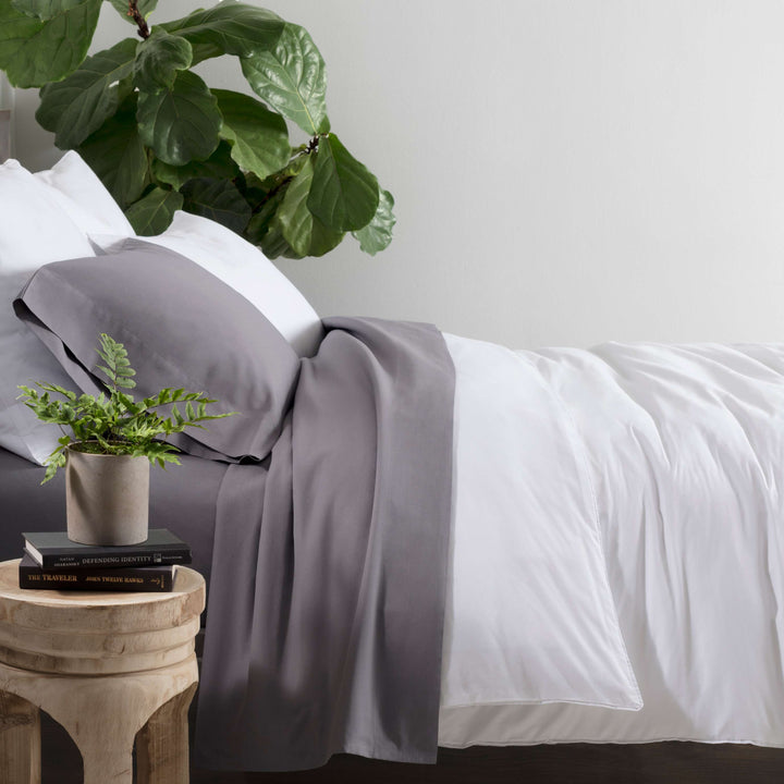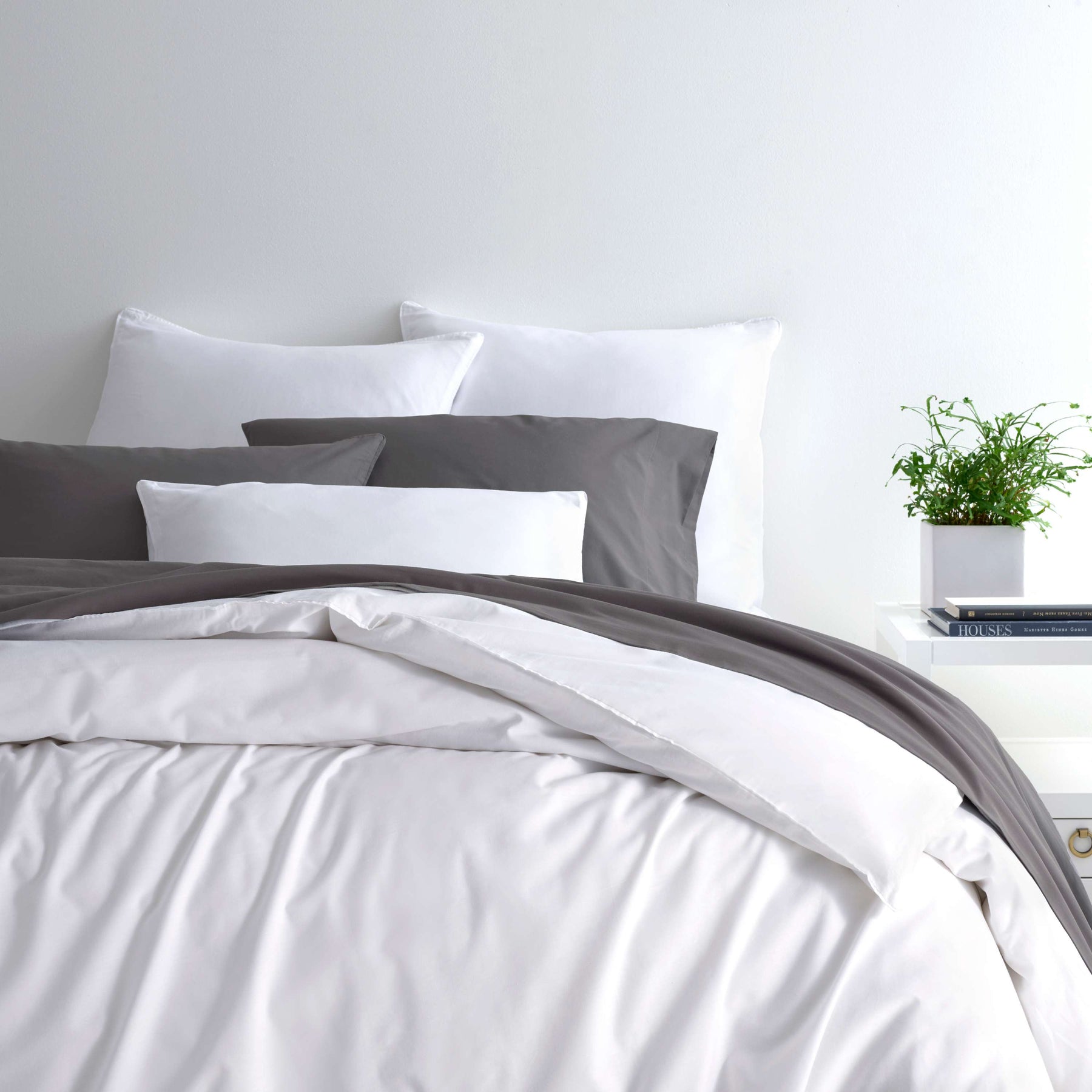 Elemental percale is comfortable in all seasons, and the building block for creating your bed. Woven from long staple cotton in 300 thread count for serious snoozing, this breathable and crisp percale duvet cover will soften with use and every wash.