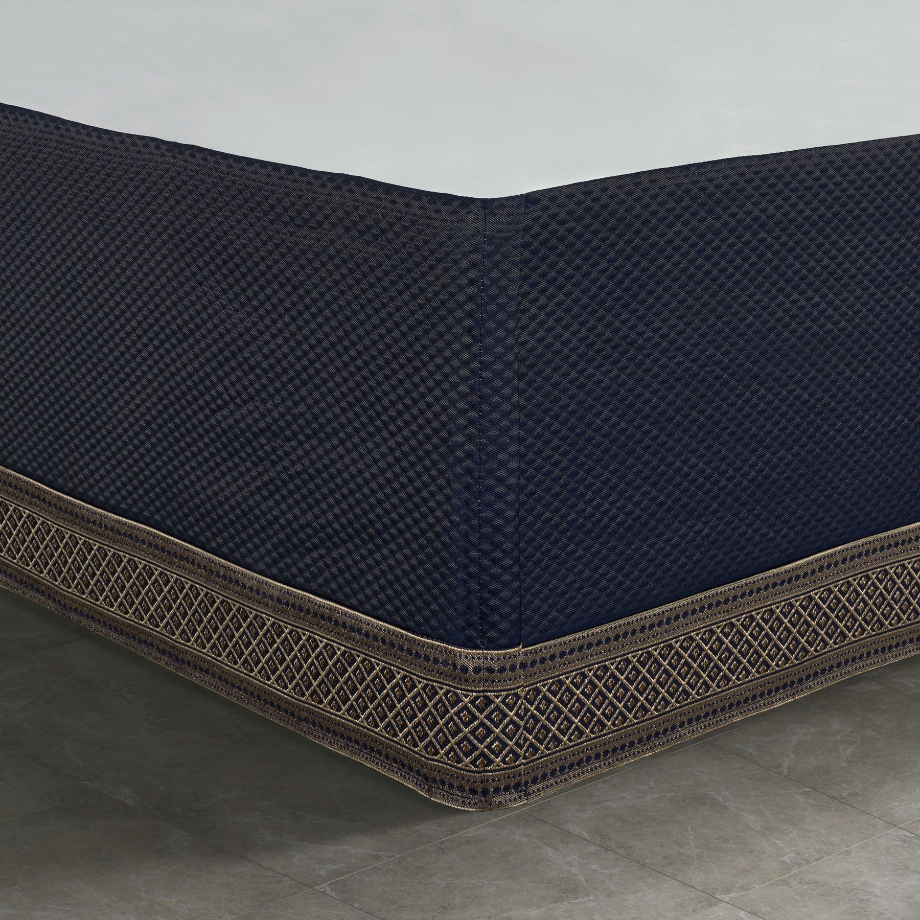 The excelsior comforter set features an engineered woven damask design, with layers of intricate woven borders creating everlasting elegance. The luxurious royal blue diamond embossed satin fabric is paired with golden yarns. The comforter is generously oversized and overfilled and finished with solid piping. Also included are 2 coordinate pillow shams, with a tailored split-corner bedskirt which adds the finishing touch. Add the excelsior accessories and window treatments to complete the look.