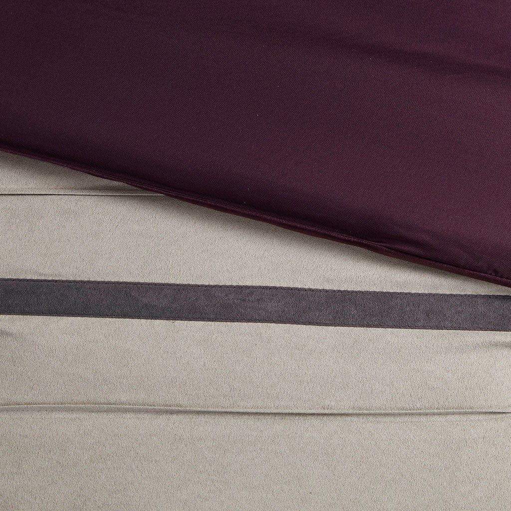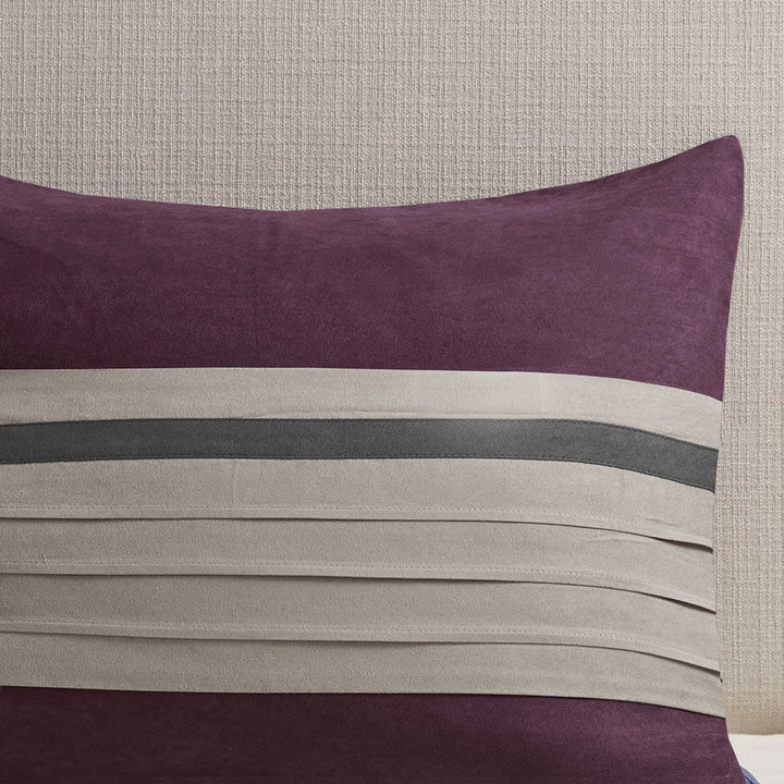For comfort and a chic design, the Palmer bedding collection is the perfect fit. Its plum comforter is made from pieced microsuede for a soft feel while the piecing details add texture and color with their grey and brown colorways. The decorative pillows add a mix of nature-inspired leaves and simple designs to combine perfectly with this collection for a simple yet dramatic look.
