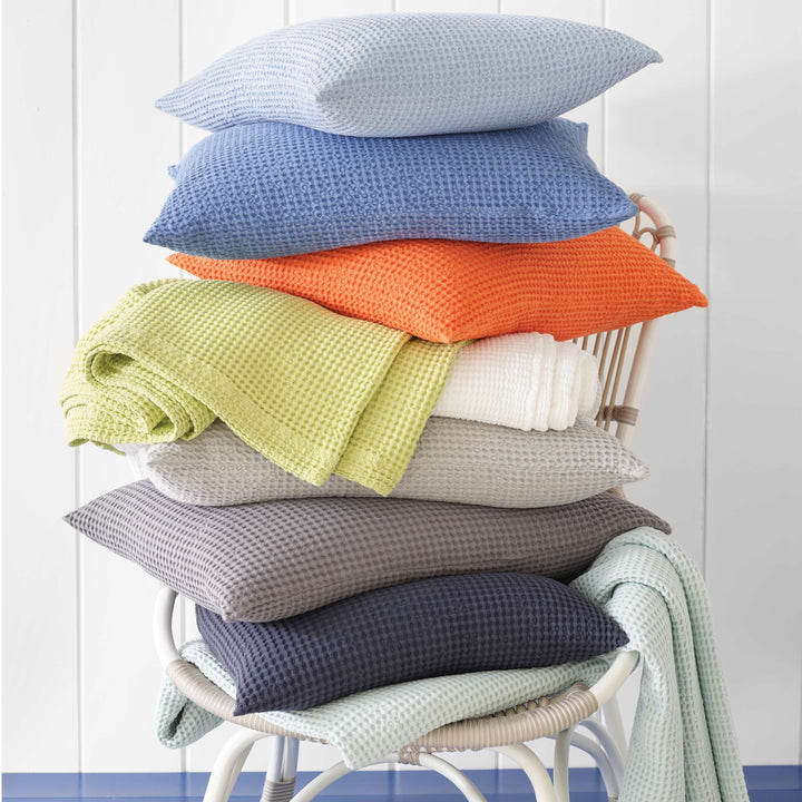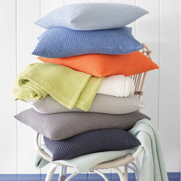 Dress your bed with our refreshed and updated cotton matelassé waffle weave for a frothy, soft look, texture and hand feel. Expertly woven in Portugal by weavers renowned for their artistry and expertise, generously sized and tailored, then stonewashed and tumbled to buttery soft laundered comfort.