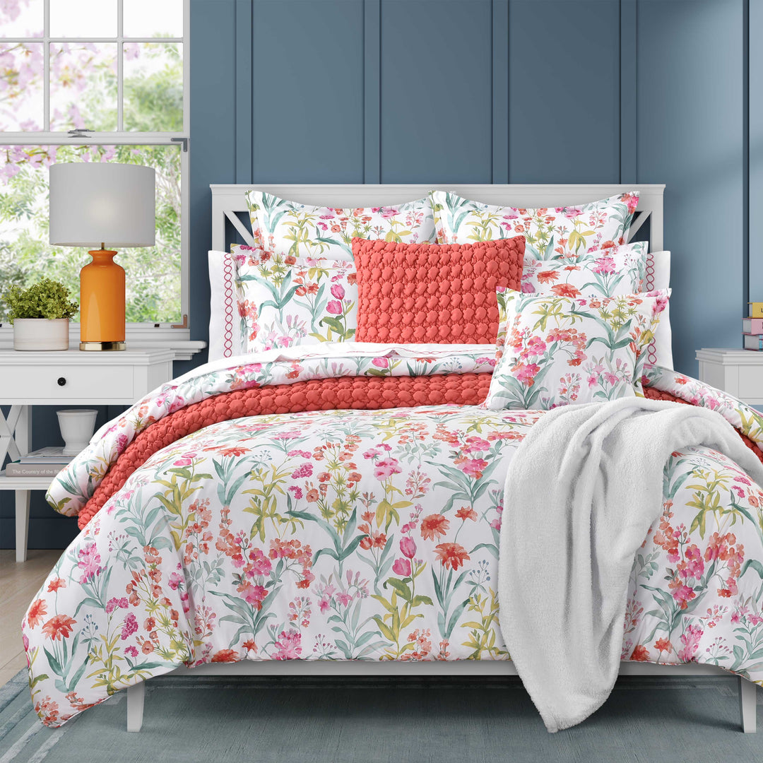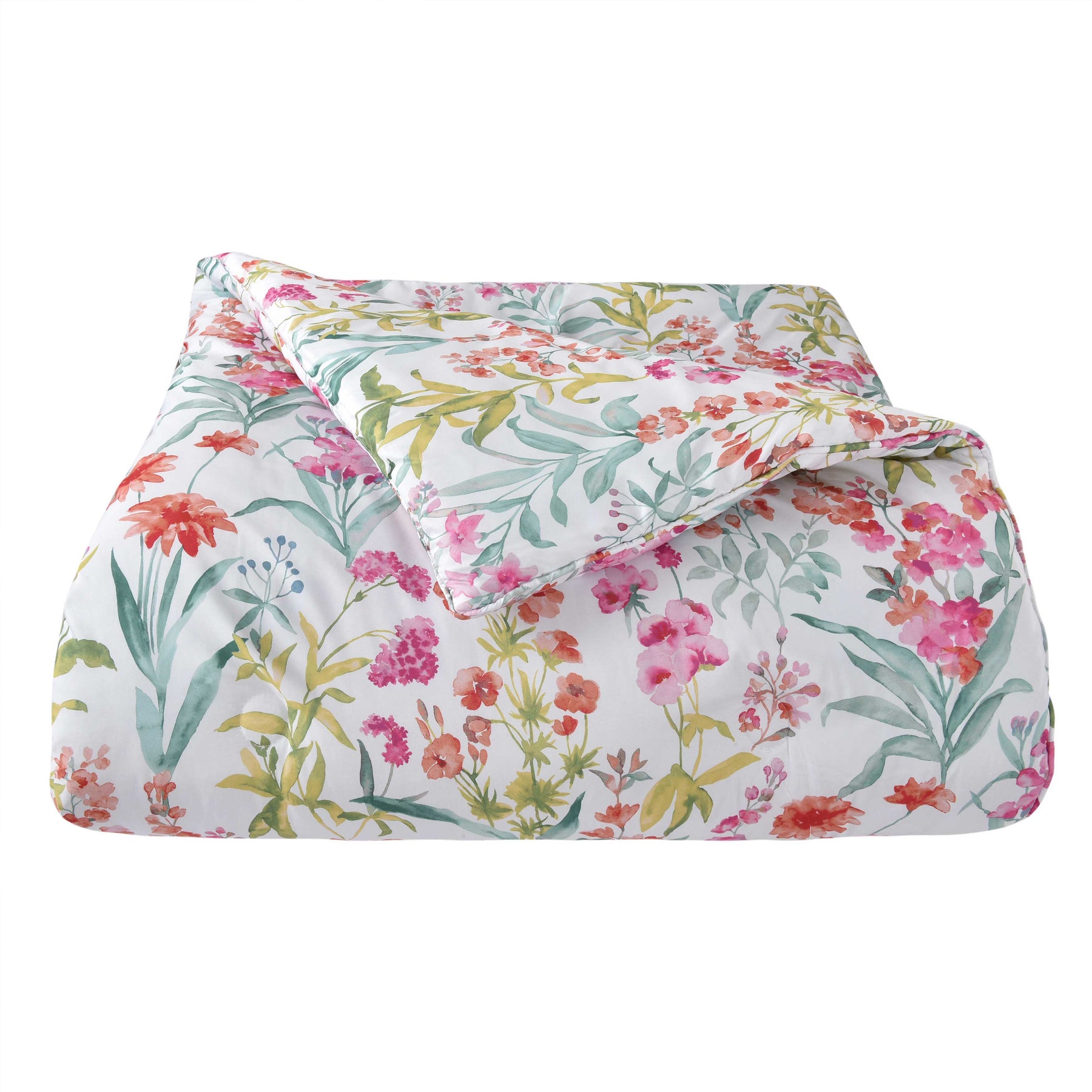 Elevate your bedroom decor with the tallulah comforter set, a perfect blend of elegance and charm. The comforter features a beautiful, delicate floral pattern in shades of pink, orange, green, and teal, bringing a garden-like ambiance to your sleep space. Crafted from luxurious, breathable microfiber fabric, this lightweight yet cozy comforter ensures both comfort and durability, making it ideal for year-round use. The set includes a comforter and two matching pillow shams (one for twin size), all designed to provide a soft, inviting feel while adding a sophisticated touch to your room. Perfect for creating a serene and stylish retreat.