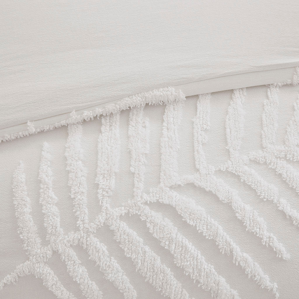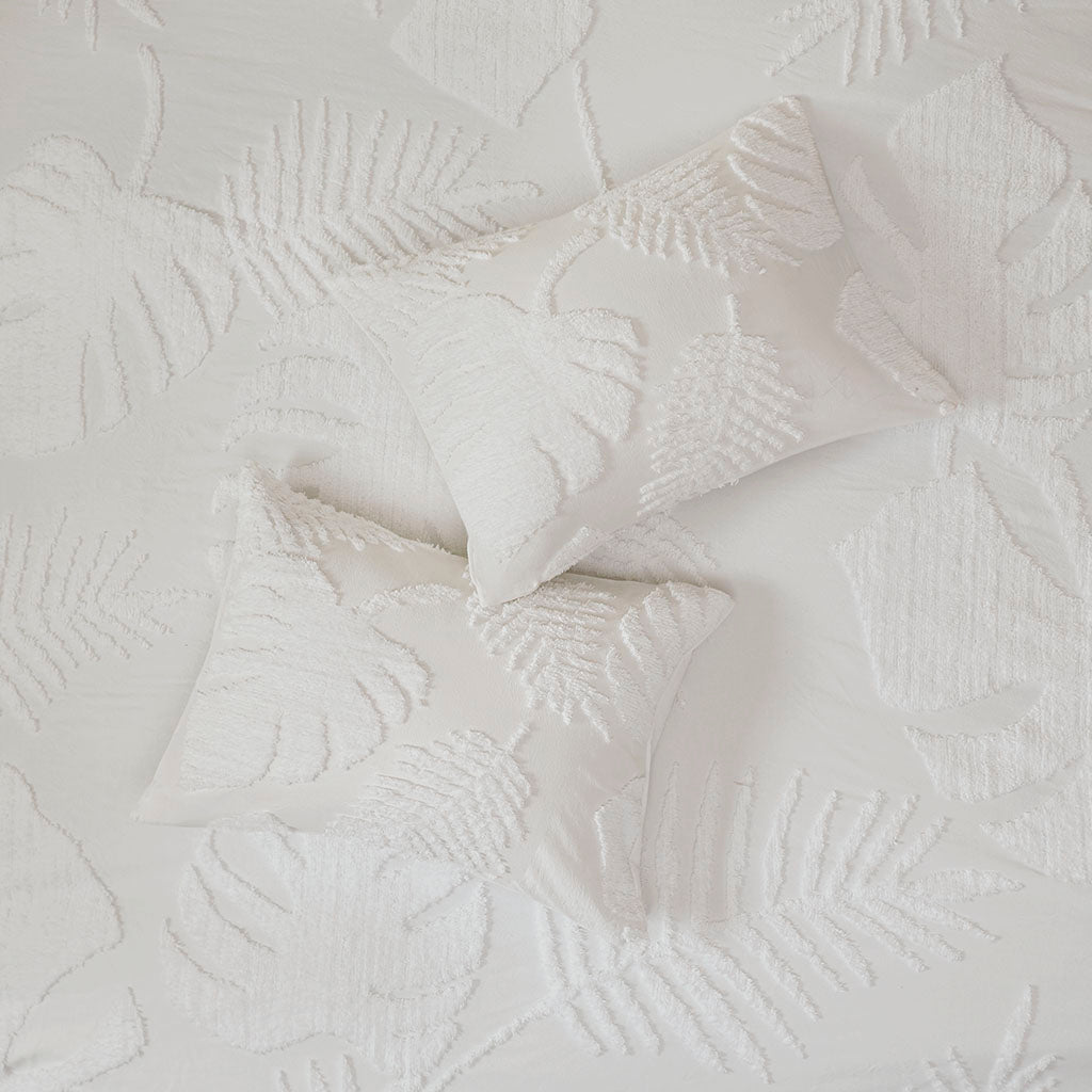 Bring a coastal charm to your bedroom with the Madison Park Bahari 3 Piece Tufted Cotton Chenille Palm Duvet Cover Set. The 100% cotton chenille duvet cover and shams feature tufted tropical palm leaves on the face for a casual coastal allure. Machine washable for easy care, this tufted cotton chenille duvet cover set serves as the perfect complement to a beach style bedroom decor. This bedding set is also OEKO-TEX certified, meaning it does not contain any harmful substances or chemicals to ensure quality comfort and wellness. A button closure helps secure a comforter insert within the duvet cover and four inside corner ties help prevent it from shifting (insert is NOT included). Due to the nature of the chenille fabric, some shedding will occur naturally in the first 3-4 washes.