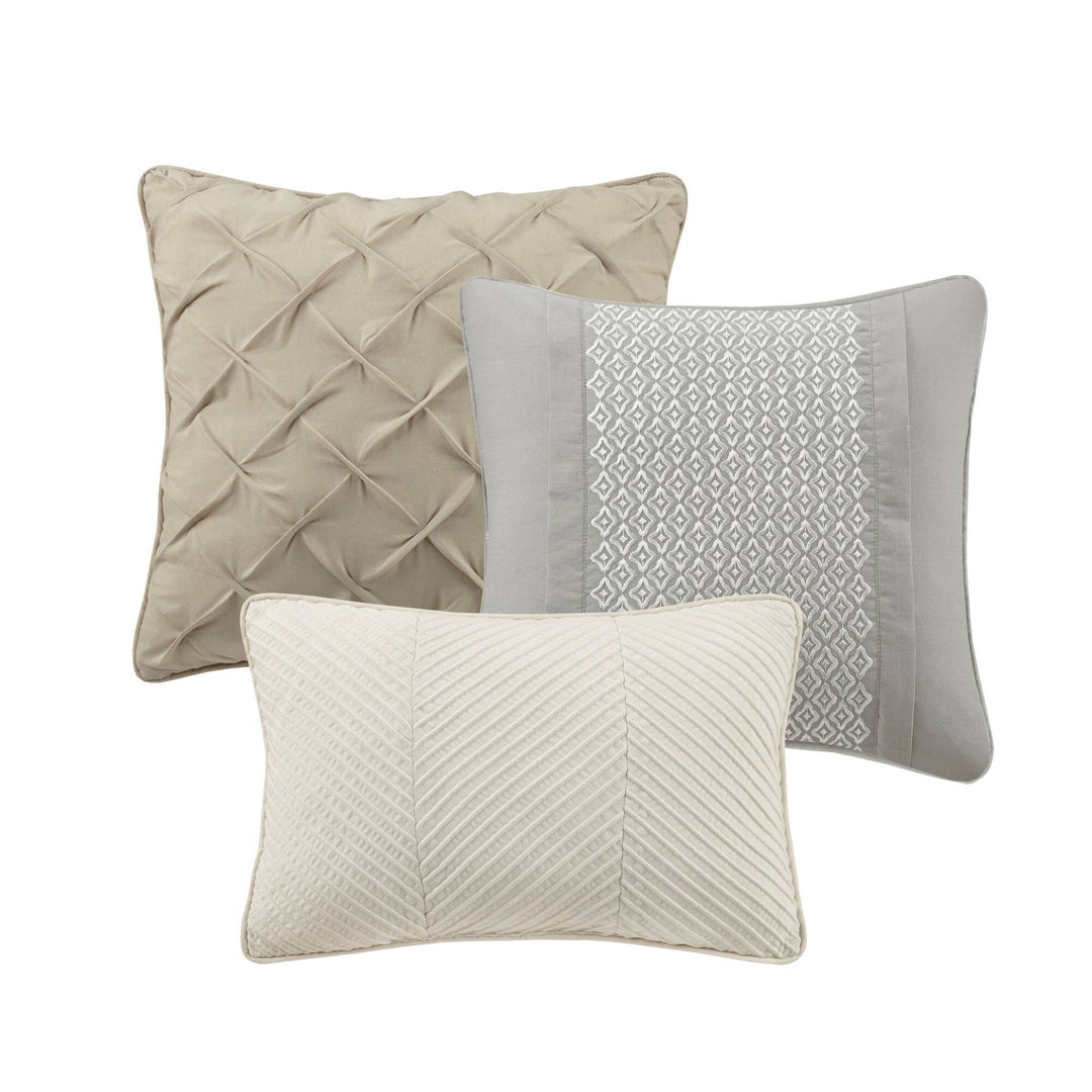 Set Includes: 1 Comforter | 2 Pillow Shams | 1 bedskirt | 2 Square Pillows | 1 Oblong Pillow