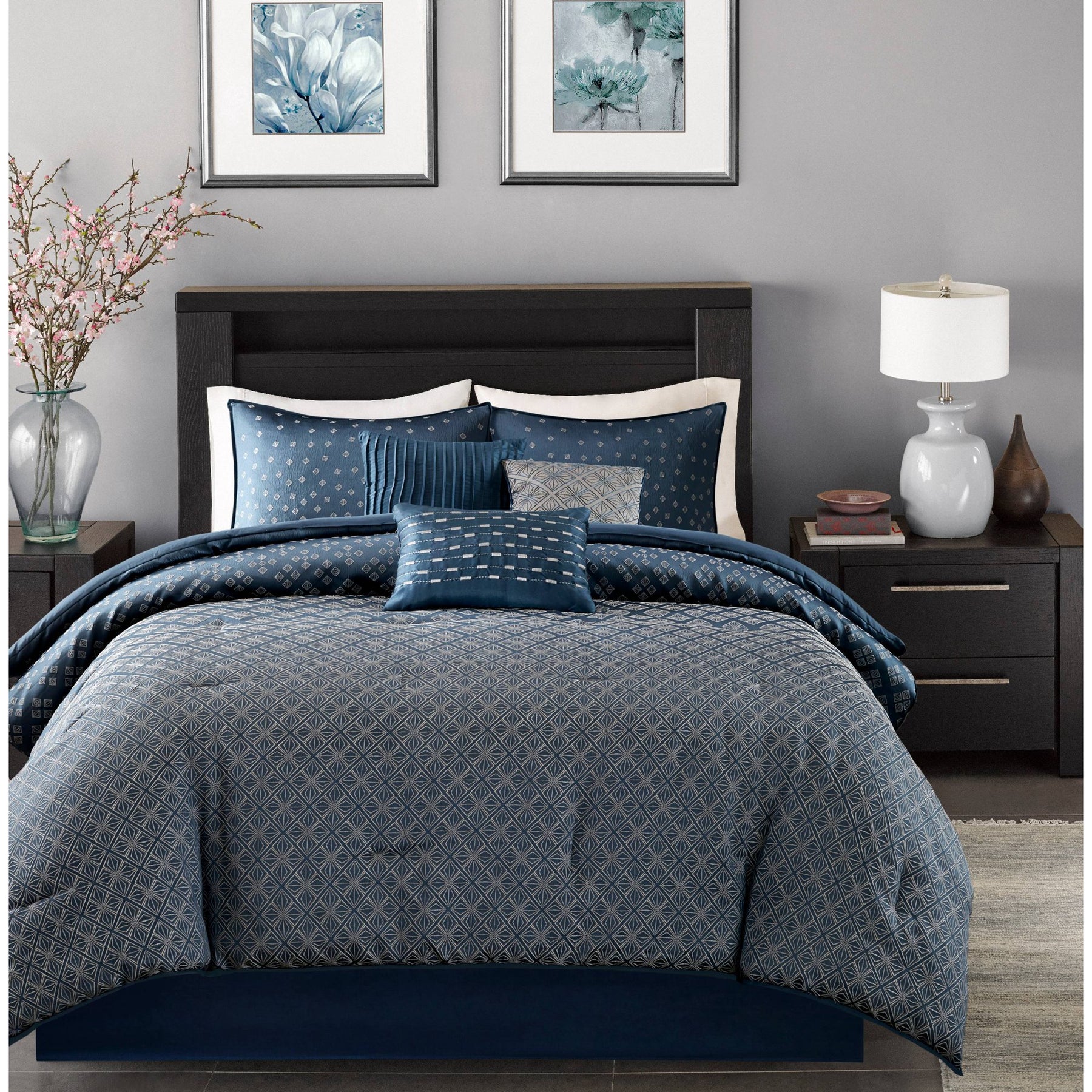 To update your space to a modern look, try the Meadow T 7 piece Comforter Set. Made from polyester jacquard, this unique design is woven to look like sequins. The design has an ombre effect looking heavy in the center of the bed and spreading out towards the top and bottom of the comforter. Two matching shams share this ombre design. Three decorative pillows use unique embroidery and fabric manipulation for the perfect new look for your space.
