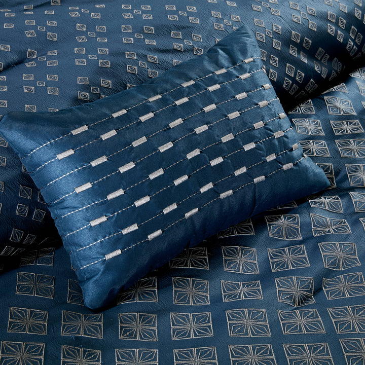 Set Includes: 1 Comforter | 2 Pillow Shams | 1 bedskirt | 2 Square Pillows | 1 Oblong Pillow
