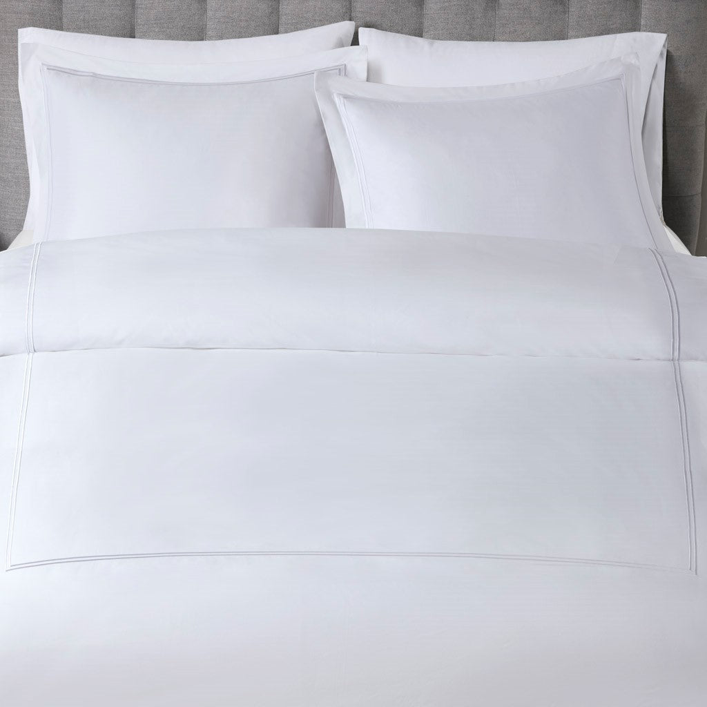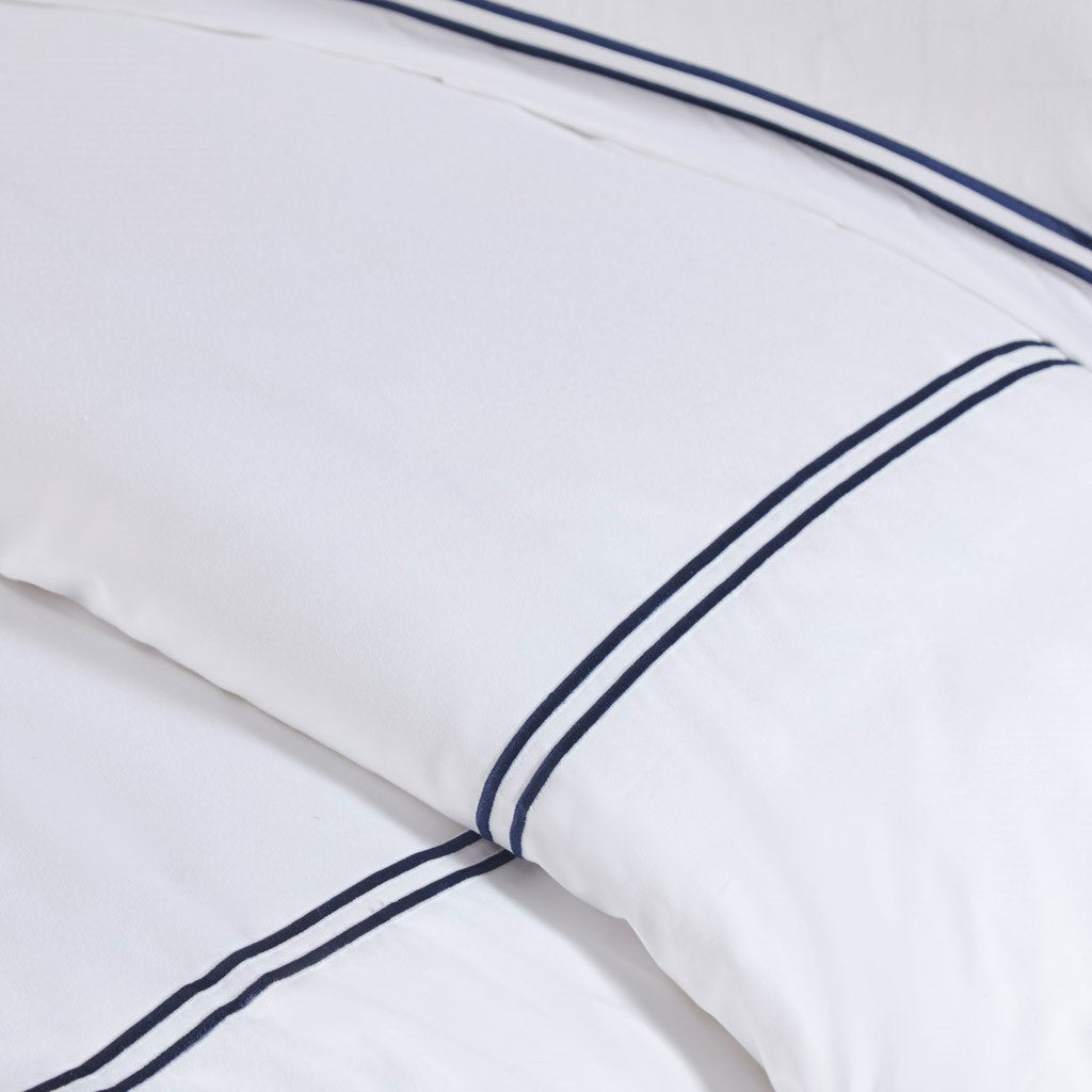 Embroidered double-row striped design on 500 thread count 100% cotton sateen premium fabric