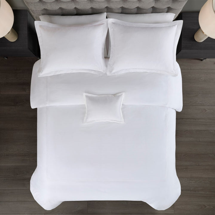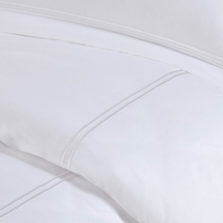 Make every night feel like a luxurious hotel escape with this 500 Thread Count duvet cover set. Made of soft cotton, this refined 4 piece set features a double-row striped embroidered border for an elegant finish. The duvet cover is removable and has corner ties with a zipper closure for easy care. This set is also OEKO-TEX certified, meaning it does not contain any harmful substances or chemicals to ensure quality comfort and wellness.