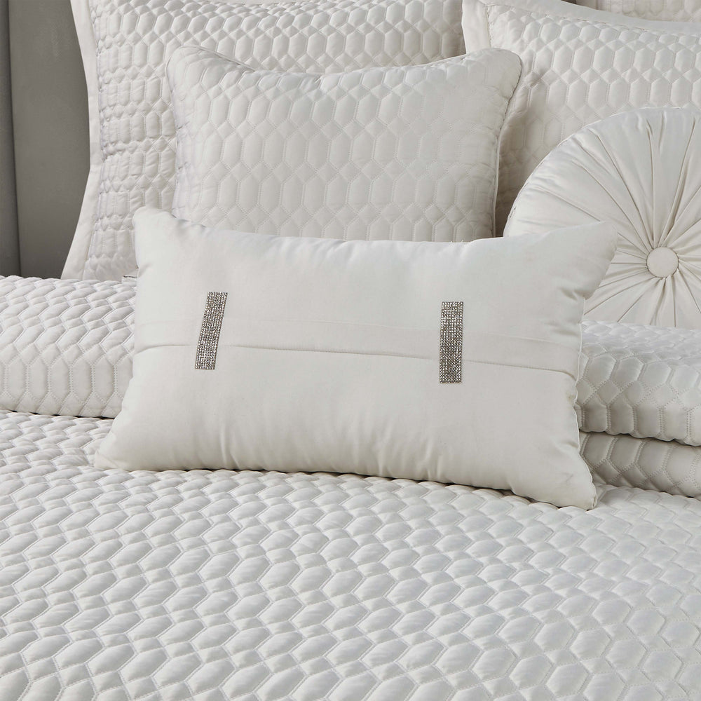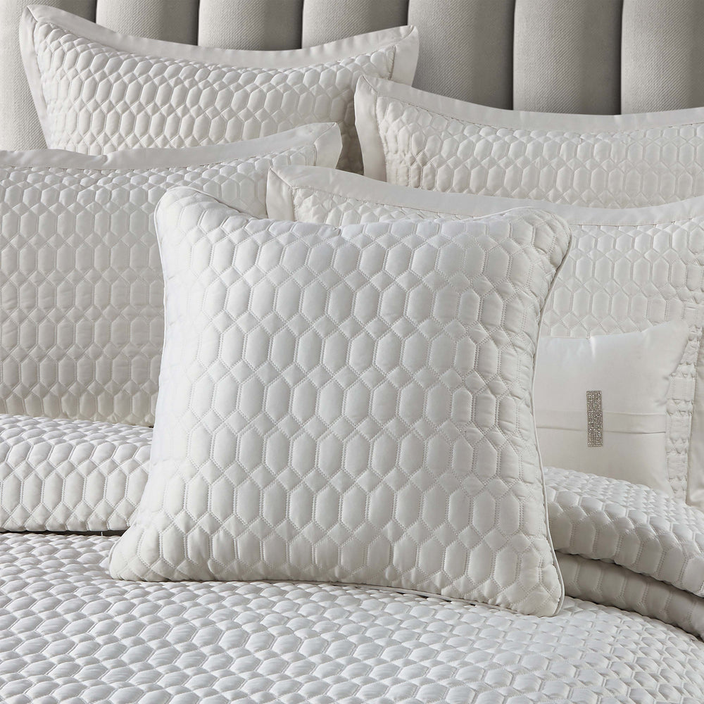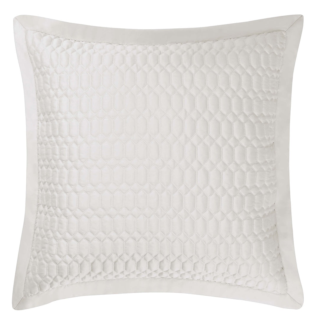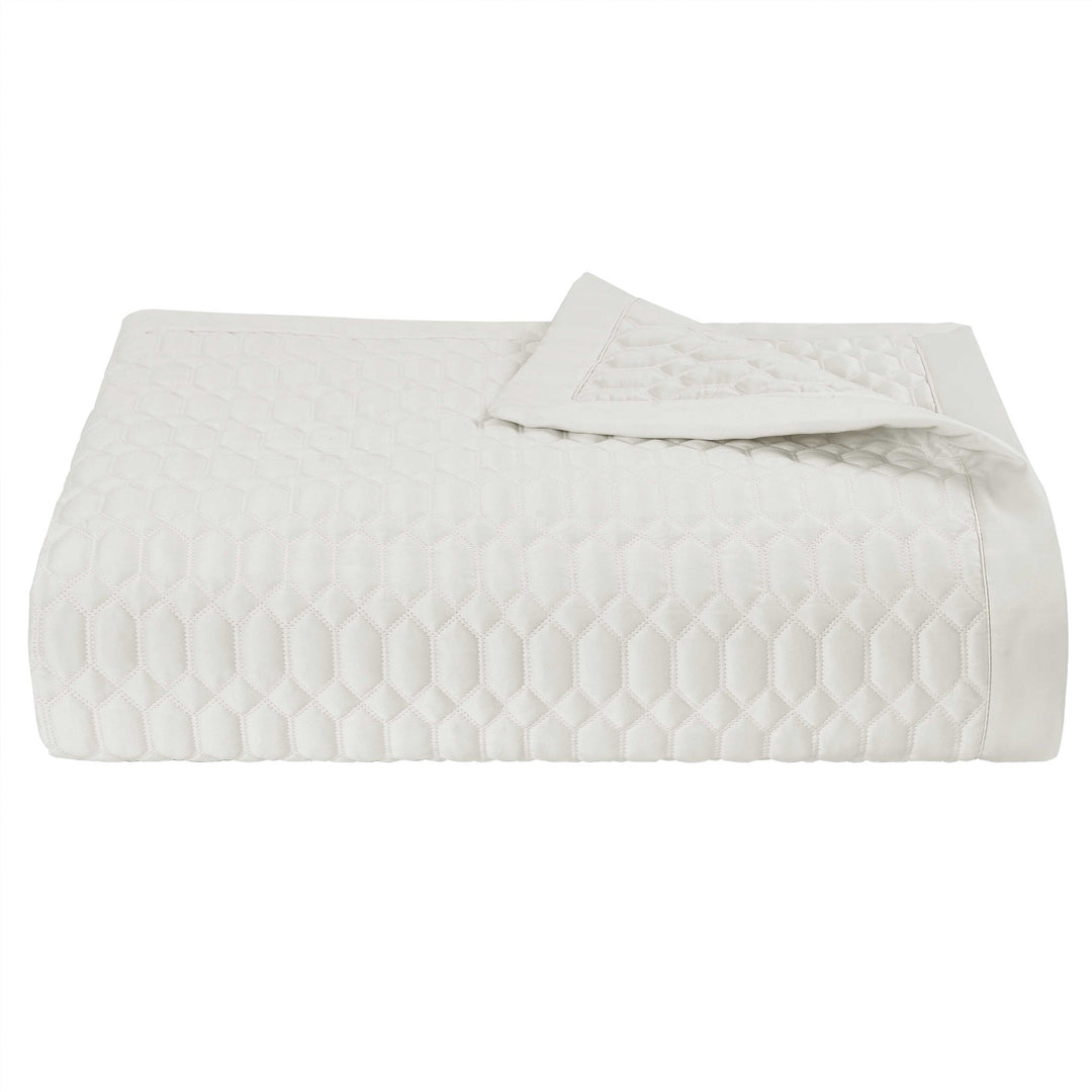 Add sleek modern luxury to your bedroom with the glamorous brilliance quilt set. This fabric is a highly constructed plush satin, designed to add a layer of elegance to your bedding. Featuring a custom geometric quilted pattern, bordered by a 2" mitered trim and pairs beautifully with an existing bed set or fairs well on its own. Add the coordinate throw pillows and euro shams to complete the look (sold separately). Available in your choice of neutral color options.