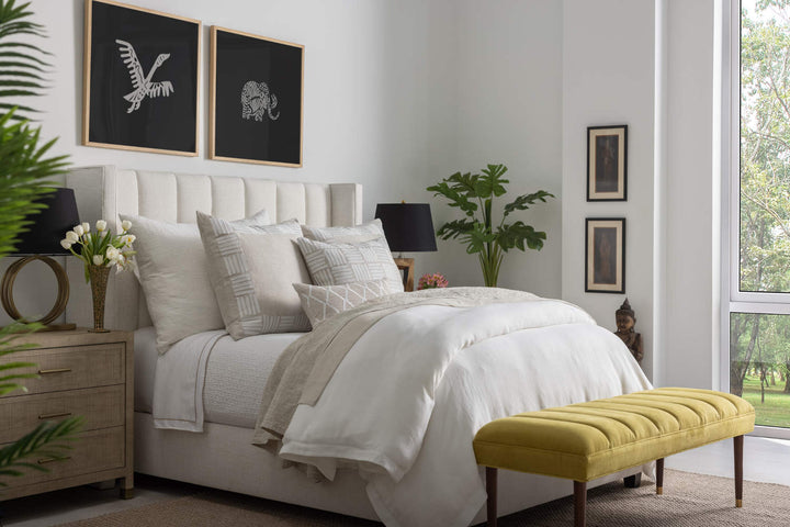 The Rain Duvet cover is made with White Cotton Linen. Machine washable. A duvet insert is not included.