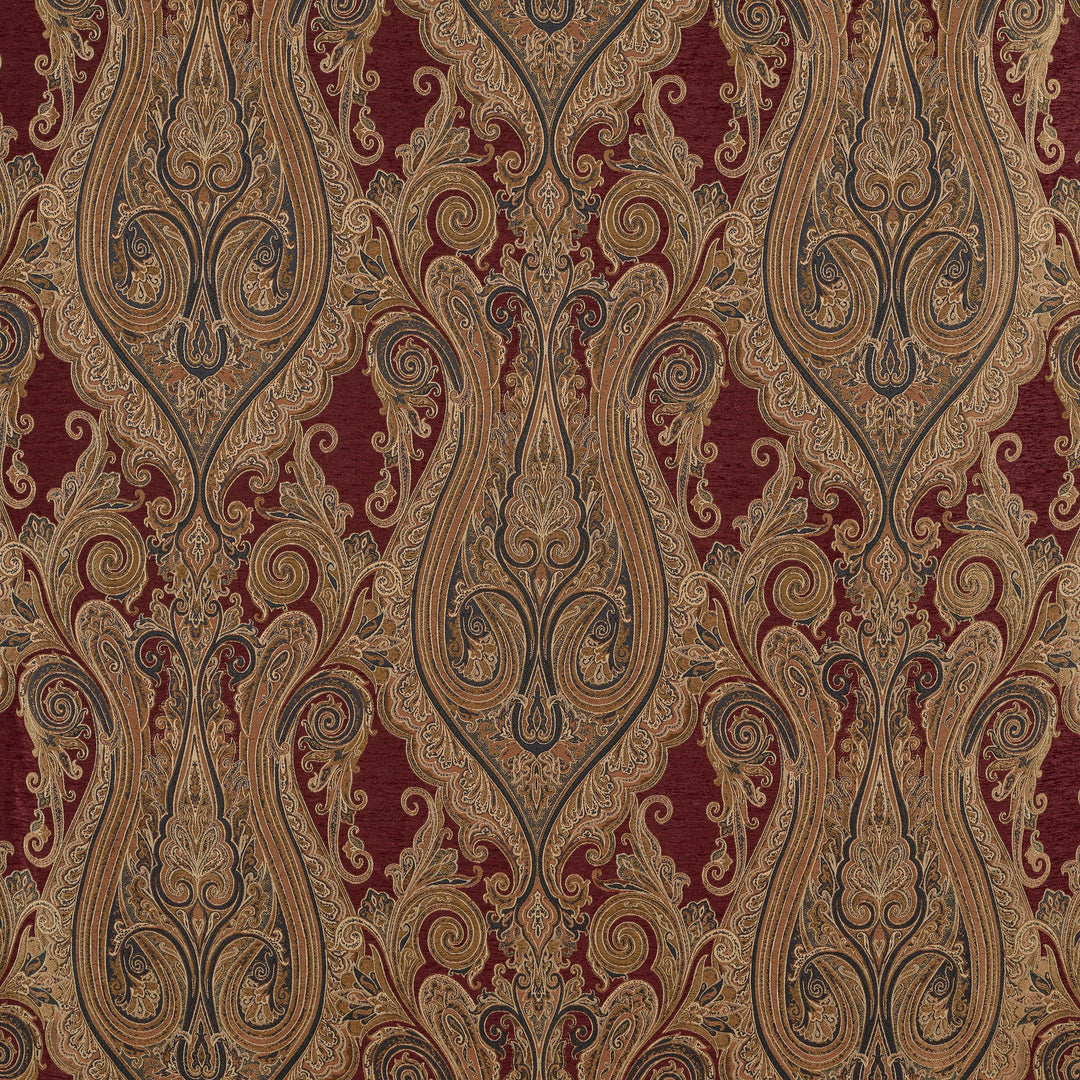majestic with its graceful design and beautiful woven jacquard lines in shades of red, teal, brown, caramel and cream