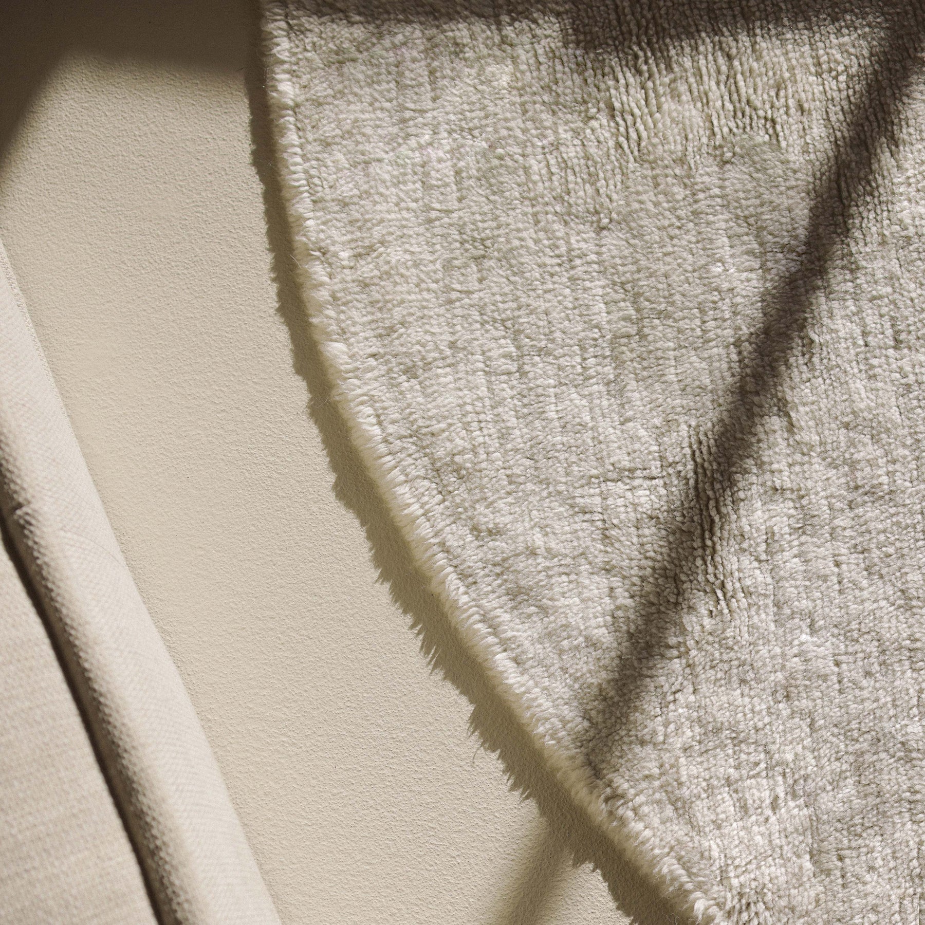 A timeless, simple, yet beautiful wool rug tufted in soft extra-short wool pile, with a slightly longer pile finish at two of the edges. Handcrafted by our artisans in non-dyed natural color, this runner rug is available in two practical sizes. Comes with a practical cotton tote bag and a separate antislip underlay This is a unique artisan piece, carefully designed by Lorena Canals and sustainably handcrafted in our own factory using natural fibers and upcycled materials, non-toxic dyes, and a firm commitment to the planet and people. From the design process, to material sourcing and production, we always choose options that minimize waste and ensure long-lasting designs. This product is made with RWS-certified wool. The RWS is a voluntary global standard that addresses the welfare of sheep and of the land they graze on.