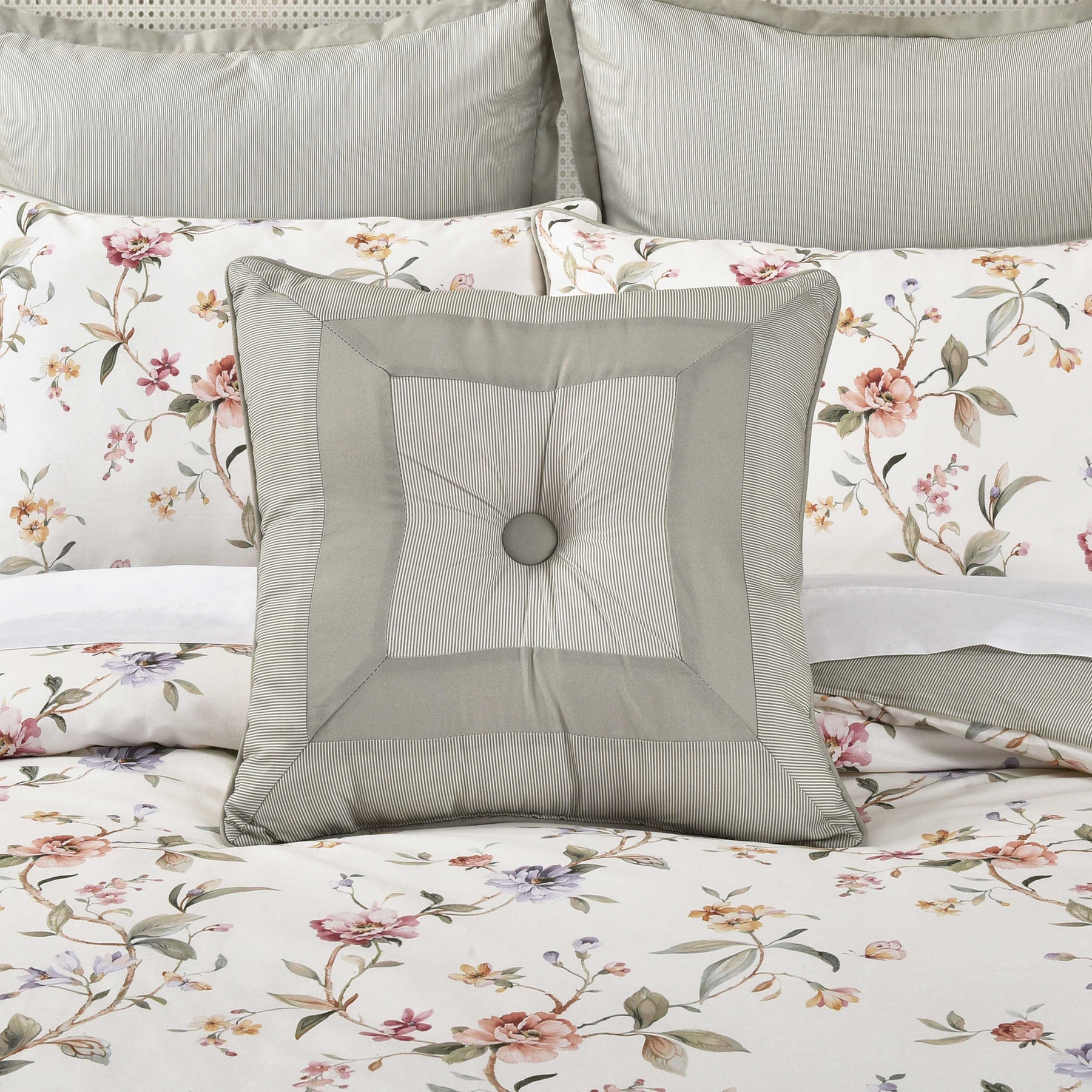 The clarice euro sham brings a touch of country chic to your decor. It features an ivory micro-stripe design with a flange trim. It is fully reversible with a coordinate ivory stripe design on the reverse and a hidden zipper closure. Add the clarice bed set to complete the look.