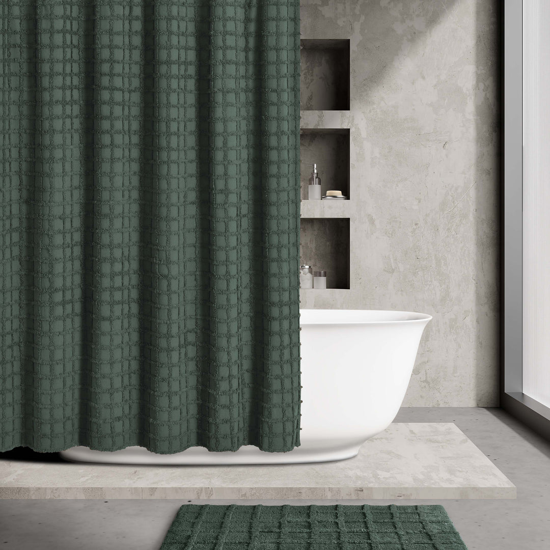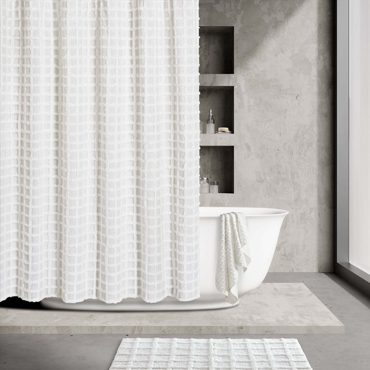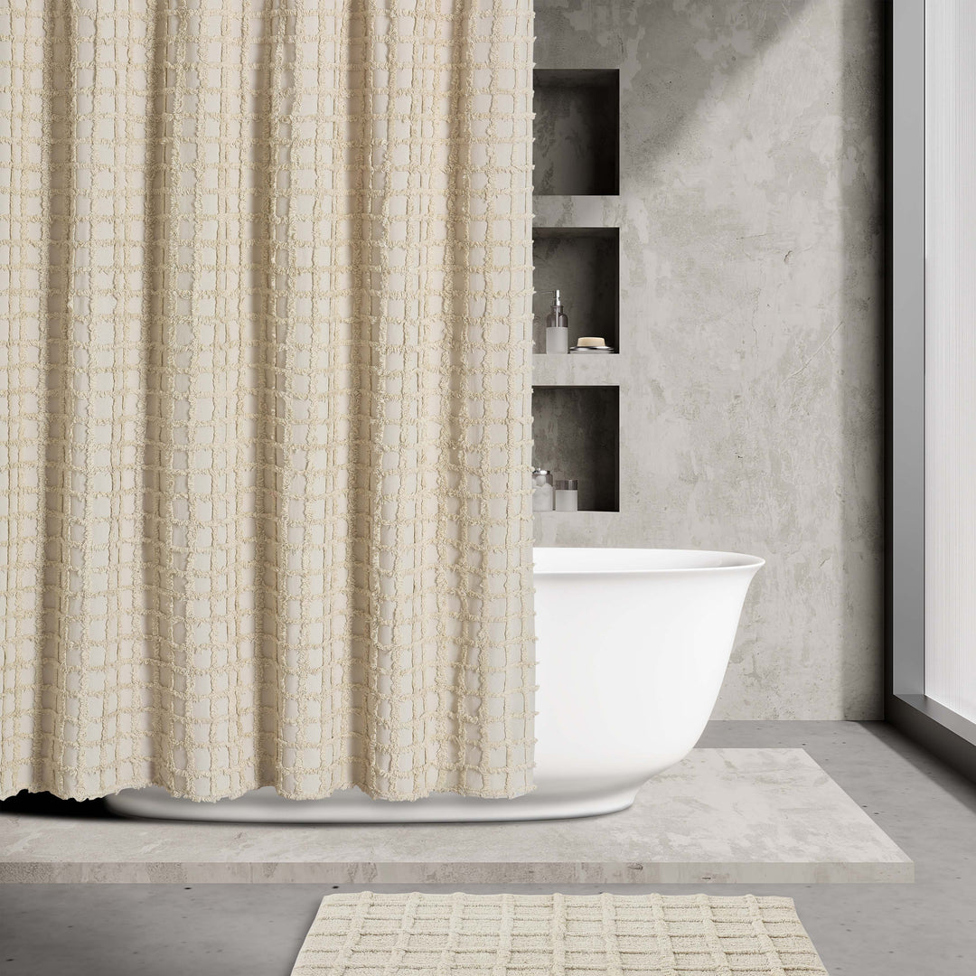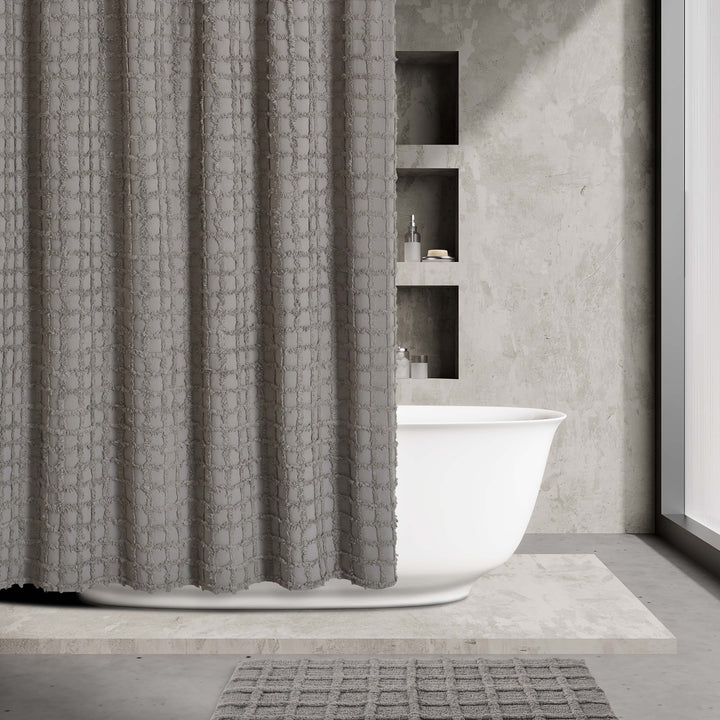 Add a tasteful touch of modern simplicity to your bathroom decor with the cameron 100% cotton shower curtain. The sophisticated tufted tonal shower curtain is available in multiple color options and offers lovely texture and surface interest to your bathroom. This standard size 72"x72" shower is durable and machine washable, making it easy to clean. Shower liner is recommended. Pair this curtain with the bath rug to complete the modern look (each sold separately).