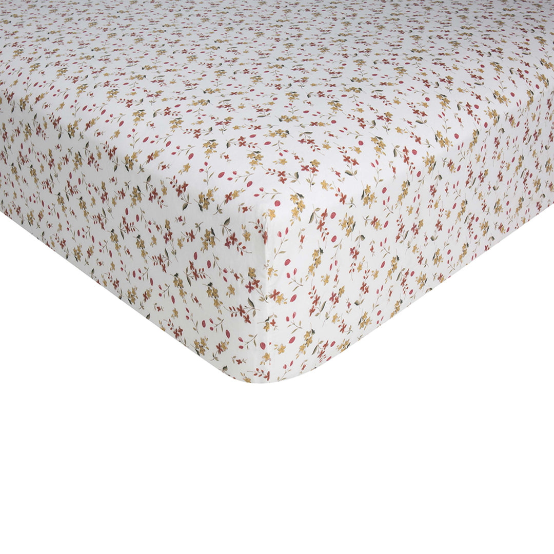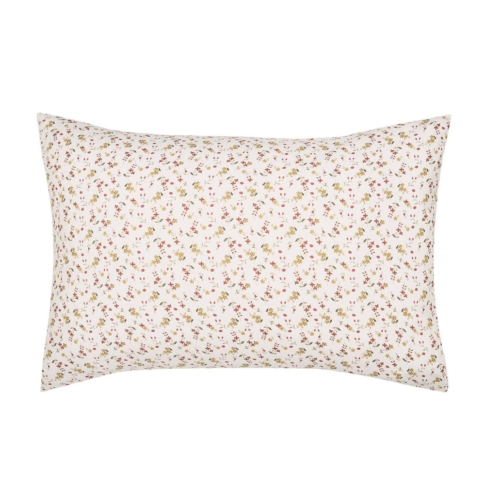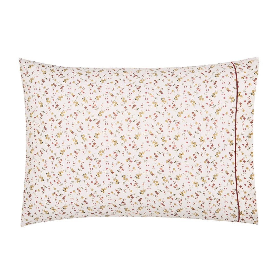 Anna offers a beautiful update on traditional floral printed bedding which combines two different floral prints. With a very happy color palette of greens, reds, and golden yellow - all on a white ground. The two printed designs look hand drawn and colored. Shams match the duvet covers, with the front side having the medium scale Botanical.