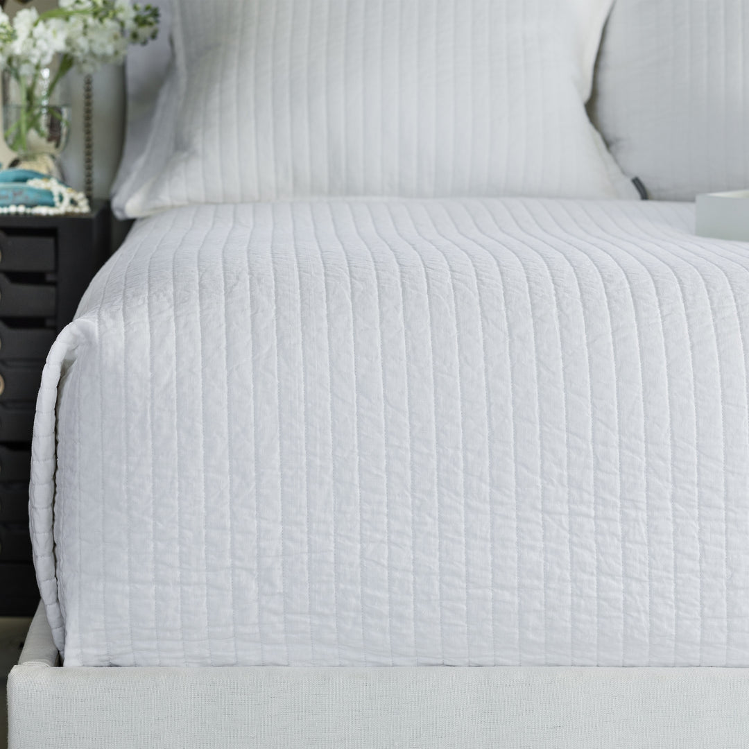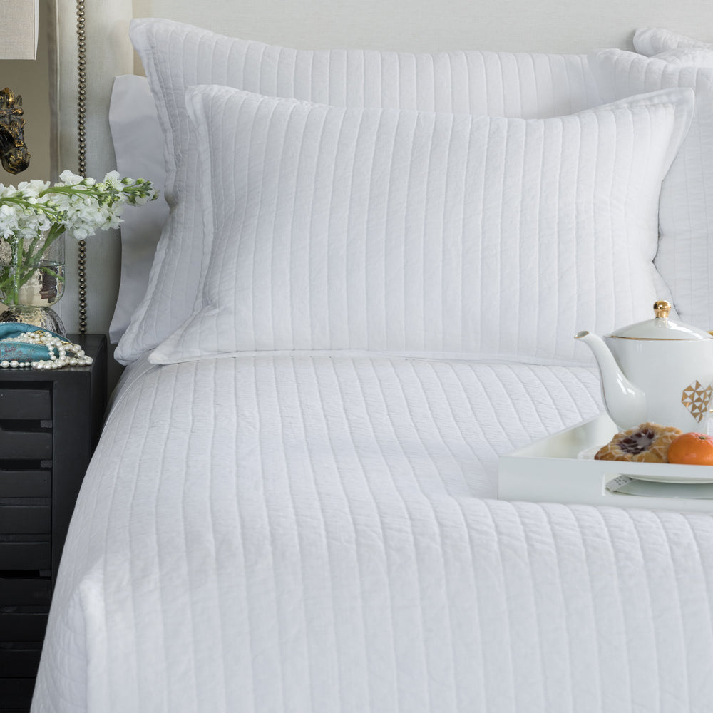 The Tessa Quilted Luxe Euro Pillow (36x27) is made with White Linen. A pillow insert is included. Machine Washable.