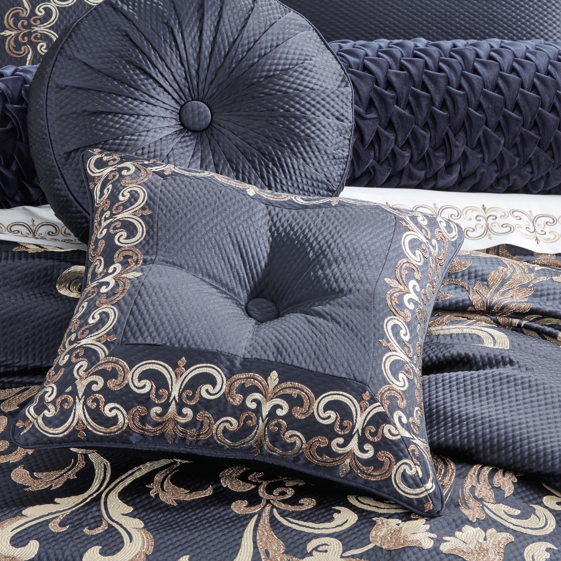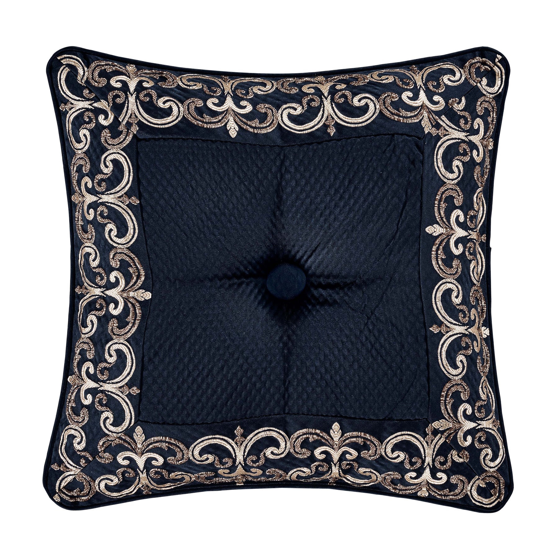 The giardino 18" square throw pillow is engineered with a rich royal blue silky textured ground and is delicately embroidered with scroll motifs. Handmade double tassels in each corner add classic and timeless beauty. Pair this accent pillow with the giardino bedding set by J. Queen new york for a complete look.