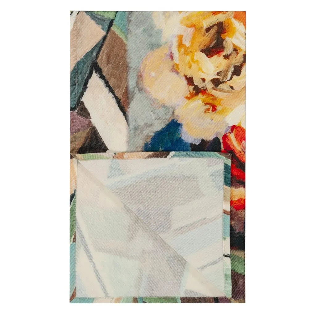 This stylish floral interior throw features expressive, painterly flowers combined with a tapestry inspired scrolling pattern complete with an abstract graphic border. In rich autumnal tones, this statement throw is digitally printed onto luxurious merino wool and finished with a hemmed edge.
