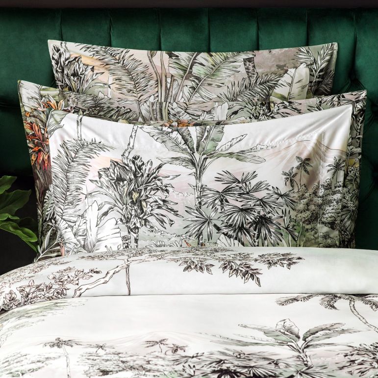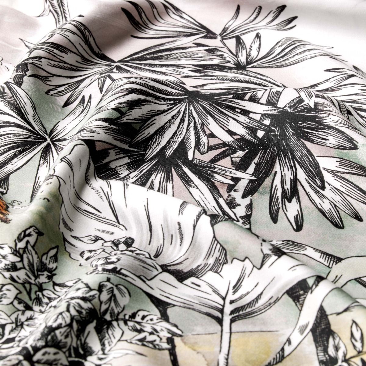 Togas house of textiles offers the new fall-winter collection “Ilbama”. It will take you from a rainy autumn and a cold winter right into the jungle and will create a tropical oasis in your bedroom. The collection includes the bedding set “Ilbama” with the ornament of a tropical forest. Togas designers were inspired by travels through the evergreen jungle of Amazon to create this ornament, which is filled with rich colors and unusual sounds, a riot of vegetation and bright bird plumage. The ornament of the bedding set "Ilbama" represents the flora and fauna of the tropical forest wit large leaves of palm trees and lianas, lush thickets of ferns, and predatory animals hiding in the foliage. The floral print of the set is made in the style of botanical prints, popular in the XIX century and created by travelers-explorers of new lands and plant species. The monochrome of the engraving softens the riot of vegetation of the ornament, the design of the set looks not only impressive but also stylish. The thin contours accented with light color lines create a work of graphic art.