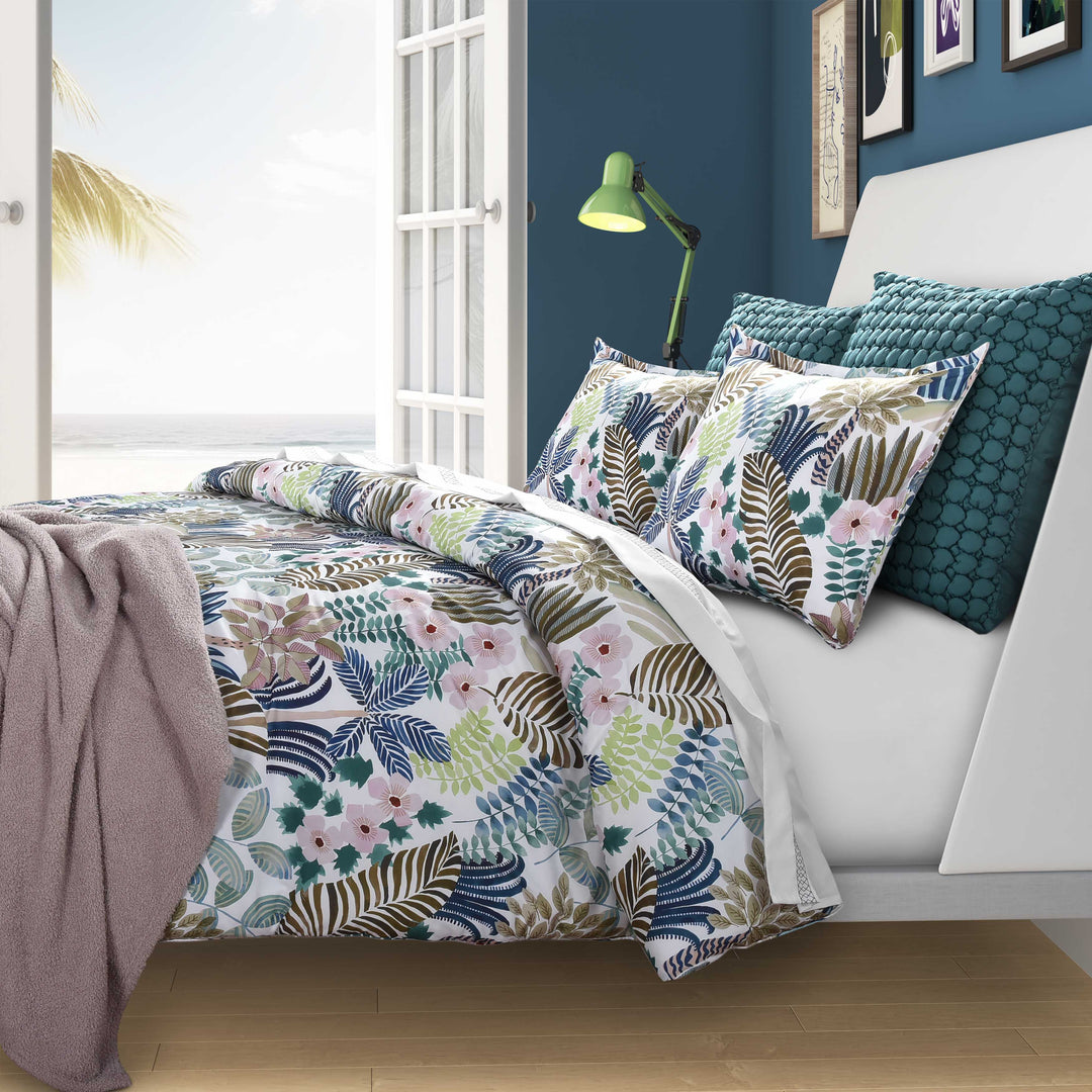 Create a lush tropical retreat with our vibrant rainforest comforter set. The eye-catching print features an array of exotic foliage and florals in shades of green, blue, pink, and tan, creating a lively and refreshing atmosphere. The set includes a soft, cozy comforter and two matching pillow shams, all crafted from high-quality, breathable microfiber fabric that ensures both comfort and durability. Perfect for adding a touch of tropical whimsy to any bedroom decor, the rainforest comforter set will make you feel like you're on a permanent vacation.