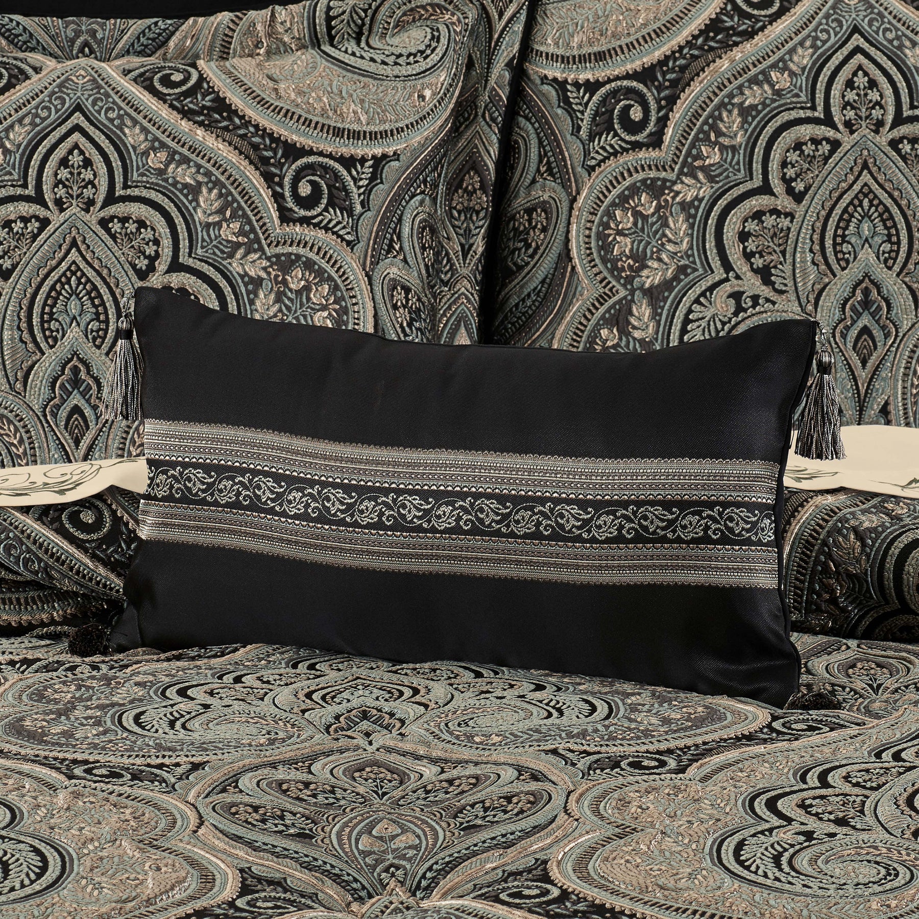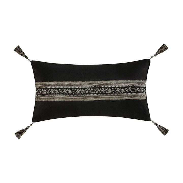Timeless and tastefully designed, the vincenzo boudoir throw pillow utilizes a woven stripe that is framed with solid black velvet. Finished with highly detailed multi-colored tassels inserted in each corner. This luxurious accent pillow is recommended to add as the finishing touch to the vincenzo bedding set.