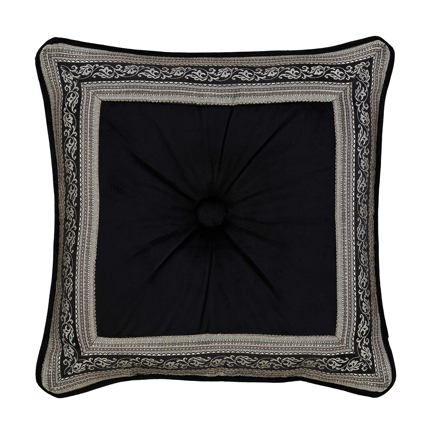 Timeless and tastefully designed, the vincenzo 18" embroidered throw pillow features a black solid velvet fabric with an intricately embroidered damask design in teal, pewter, taupe and gold hues. This luxurious accent pillow is recommended to add as the finishing touch to the vincenzo bedding set.