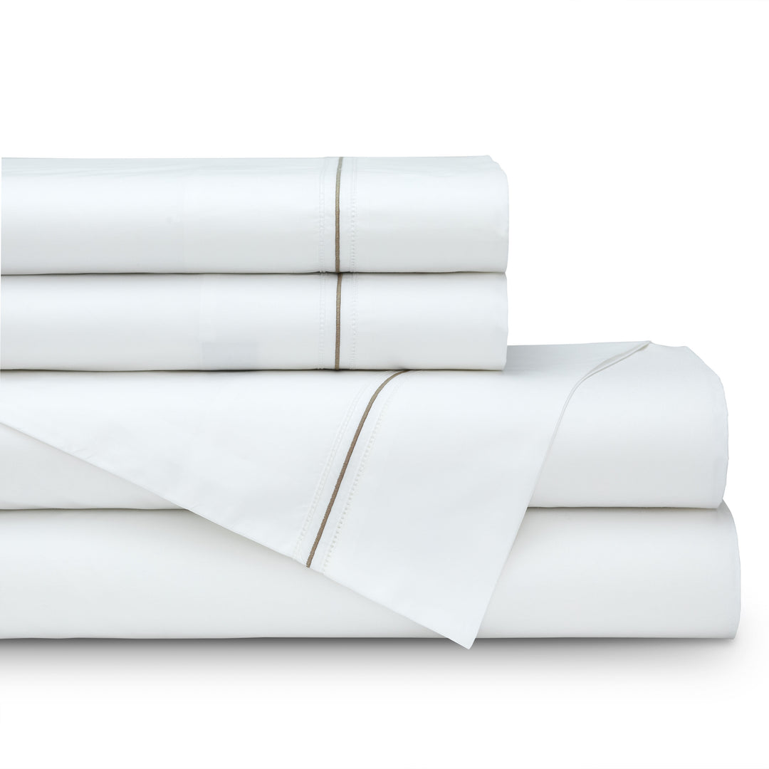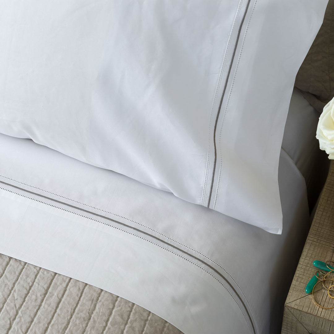 Bella White/Raffia Double Hem Stitch Pillowcase Set