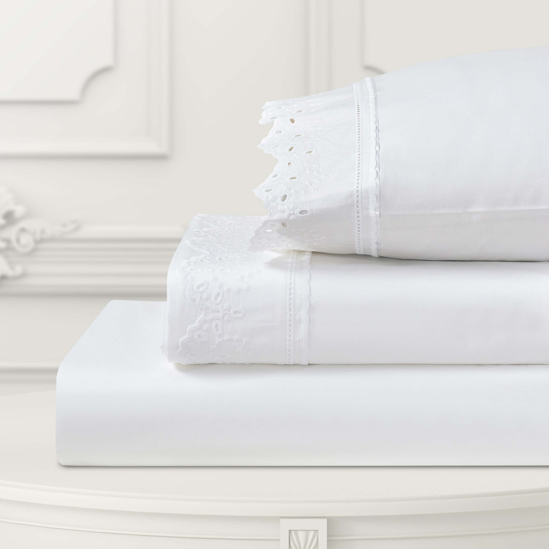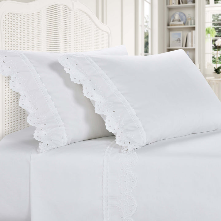 Eyelet White 4 Piece Sheet Set