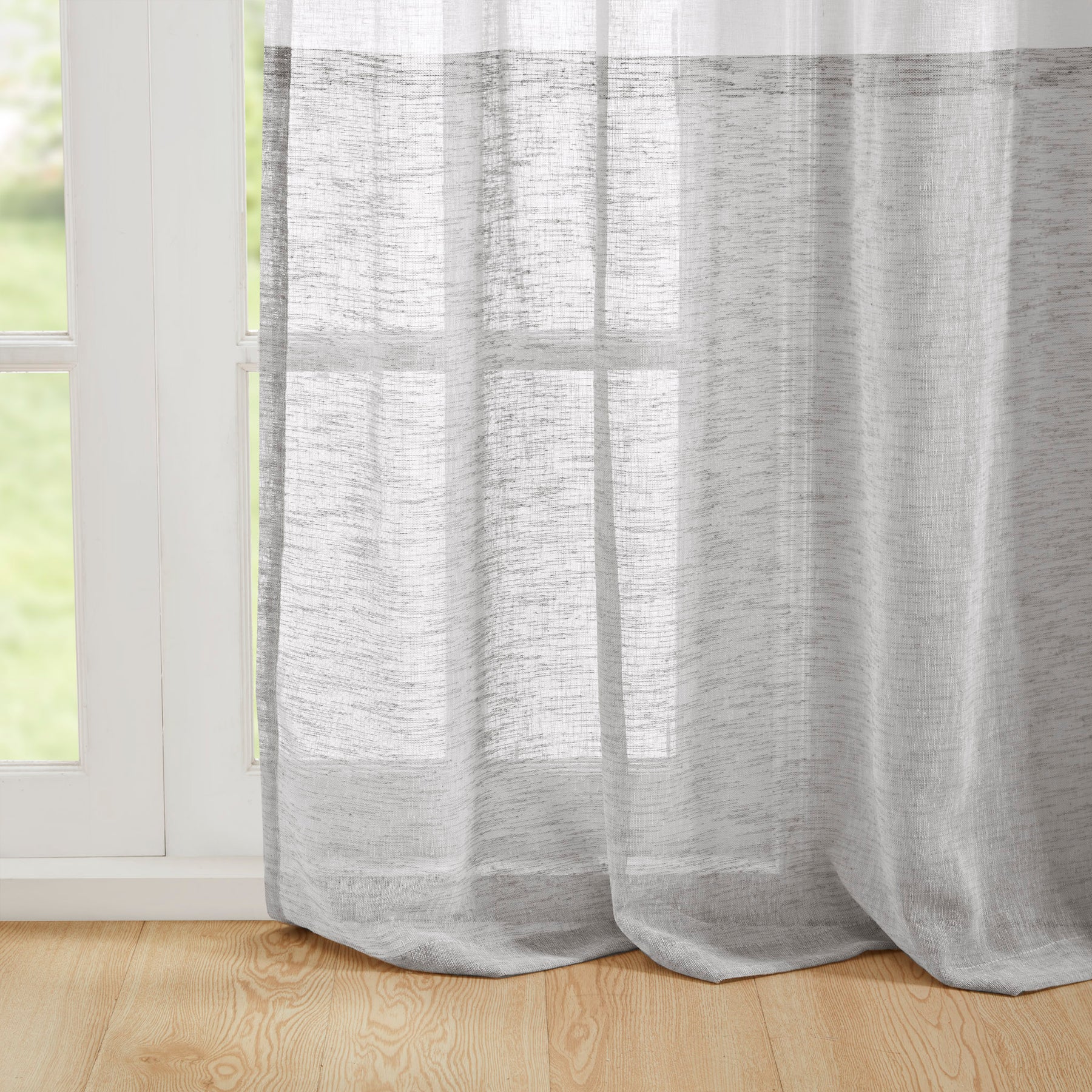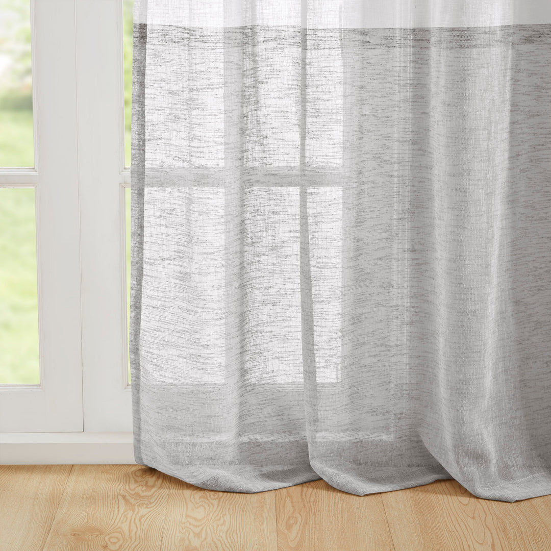 Inspired by the color-blocking trend, this curtain panel is tailored with a two color layering of white and grey to create a modern look in a simple way. The linen-like fabrication is semi-sheer and lightweight and it provides an advanced light transmission during the day time. The grommet top creates a beautiful wave and makes the panel easy to hang, open, and close for daily use.
