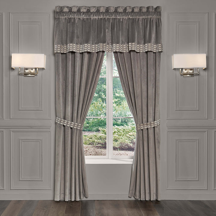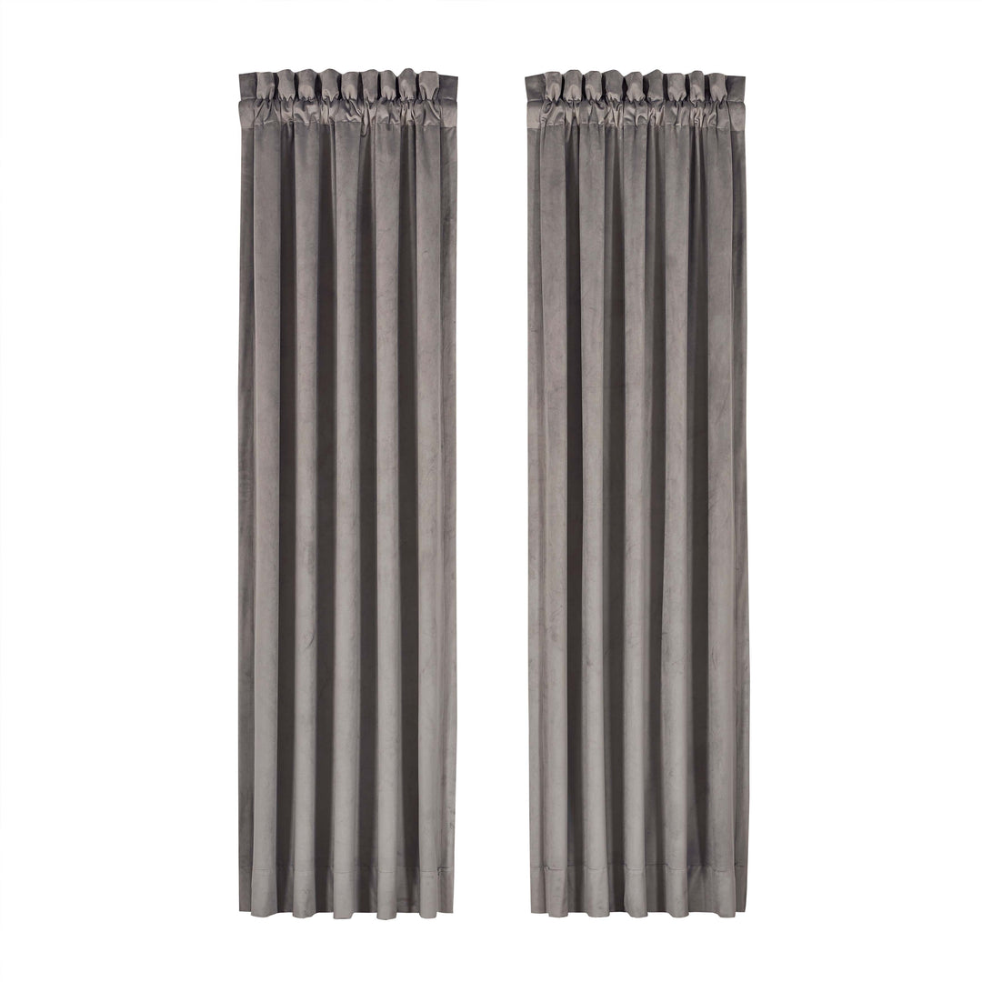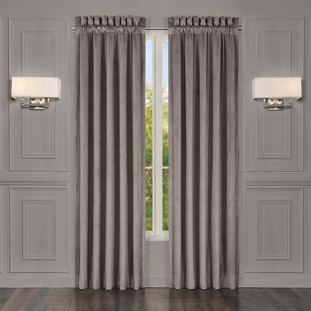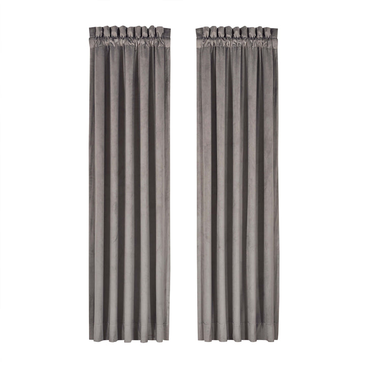 The belvedere window panel pair is exquisite with its fine details and sophisticated use of silver, champagne, and ivory tones. The beautiful velvet diamond woven design is rich with its 3-dimensional weave and soft velvet touch. These lined panels are the perfect finishing touch to keep your room shaded and comfortable to add a very attractive look to your bedroom decor. The 3" header and 3" rod pocket make these panels easy to hang. Pair these panels with the belvedere window valance and bedding set by J. Queen new york for a complete look.