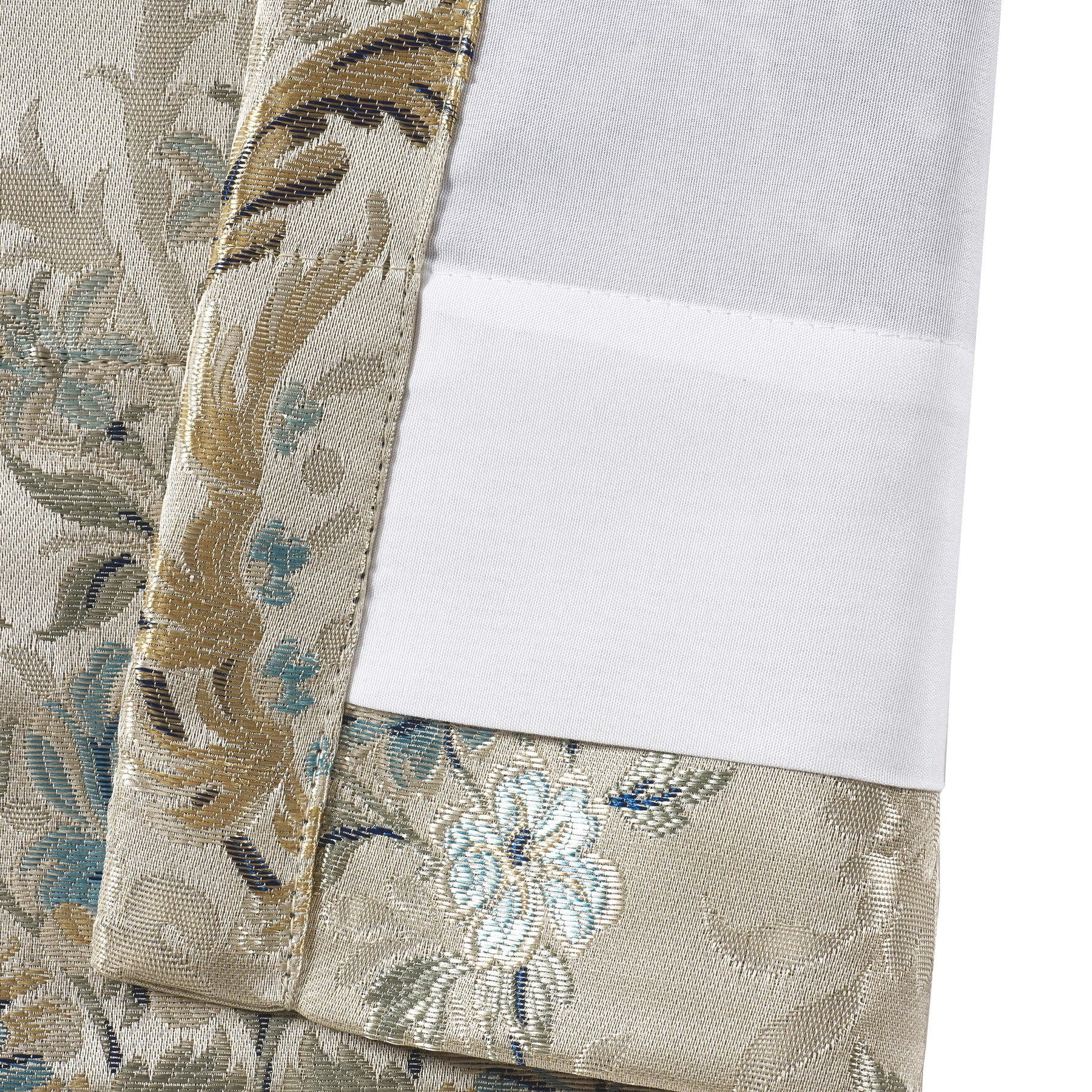 The jacqueline drapery panels add an elegant decorator touch to your windows. The ivory panels are cut and sewn with a woven floral jacquard pattern. Each panel is cut by the same staring point to insure all panels match when hung side by side. The 3€� header and 3 €� rod pockets make these easy to setup and they are lined with a solid white lining to keep your room cool and comfortable. The jacqueline window valance is sold separately.