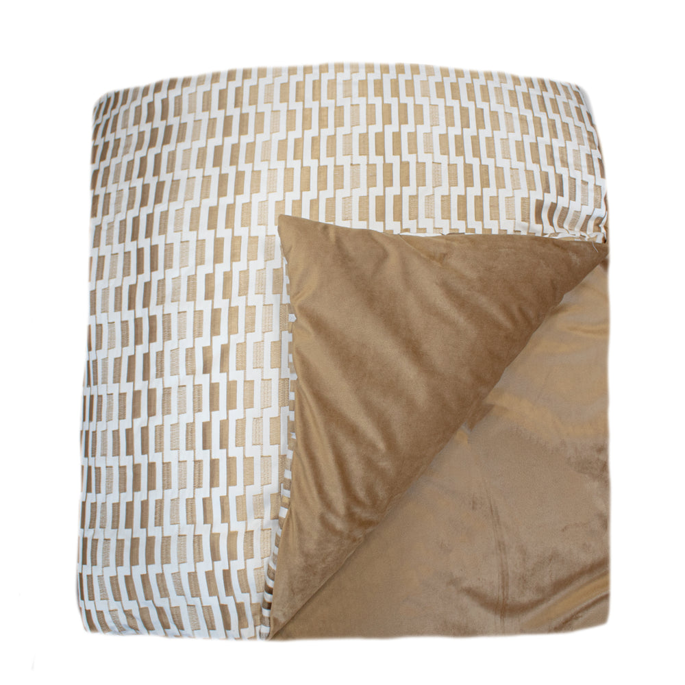 The Art of Home by Ann Gish was created to provide customers with the same quality of goods curated by Ann Gish, at an attainable price point. The products from this collection are sure to elevate any space. Our designs rely on elegance that is easy and pleasurable to live with, achieved through a marriage of form and function. It is luxury created for and enjoyed by the senses. This graceful pattern of greens, ambers, and tans is digitally printed onto a linen blend. Tiny rectangles of embroidery dance across this 100% cotton fabric. Available in palladium and gold, two very precious metals.