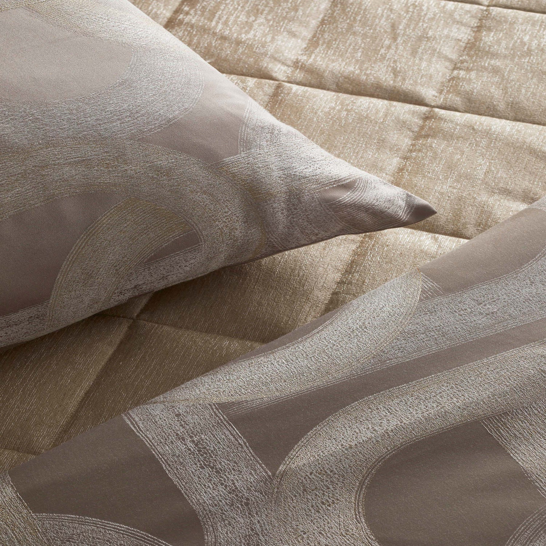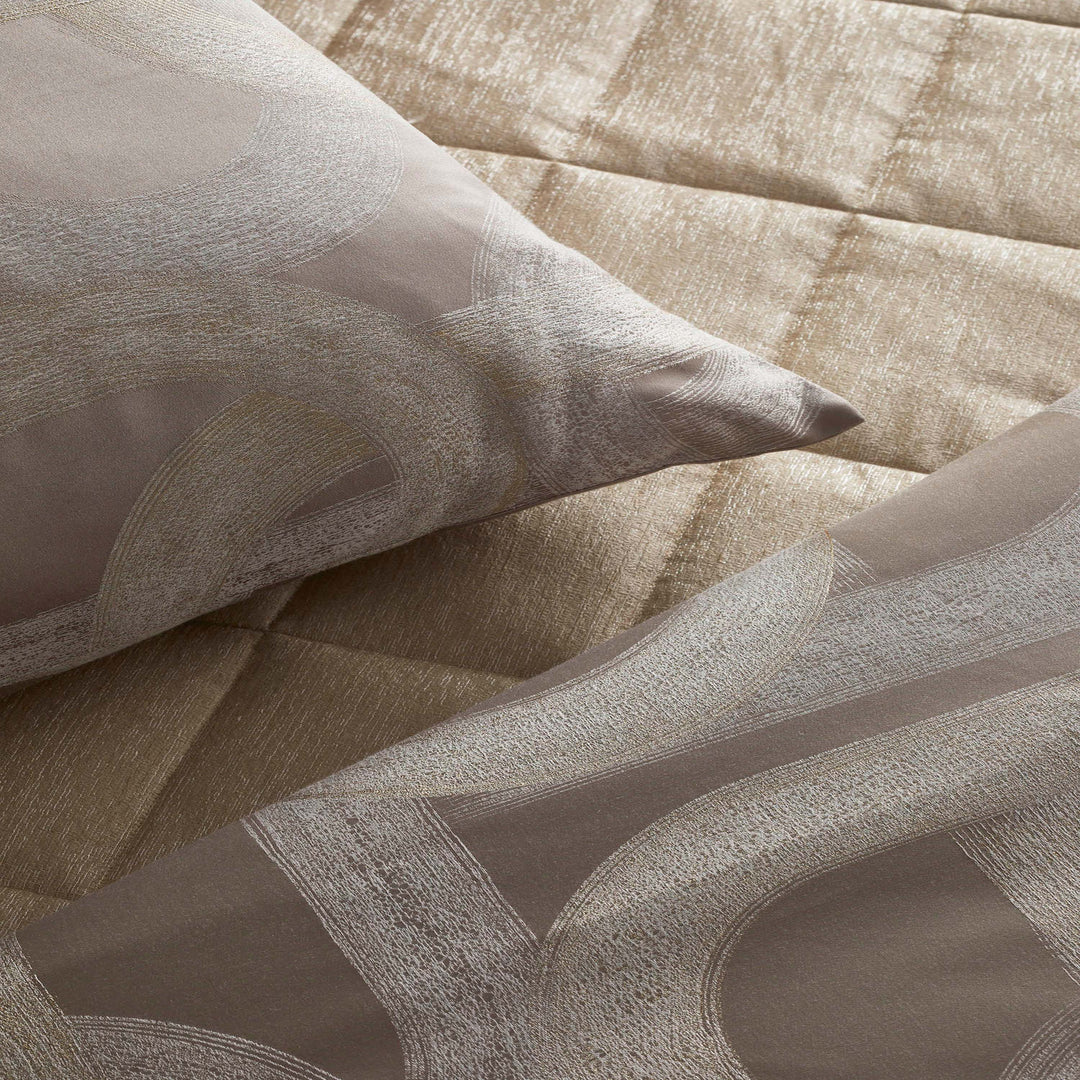 The Art of Home by Ann Gish was created to provide customers with the same quality of goods curated by Ann Gish, at an attainable price point. The products from this collection are sure to elevate any space. Our designs rely on elegance that is easy and pleasurable to live with, achieved through a marriage of form and function. It is luxury created for and enjoyed by the senses. Metal toned strokes bedeck a black, taupe or pearl ground; depicting the curves of the road.