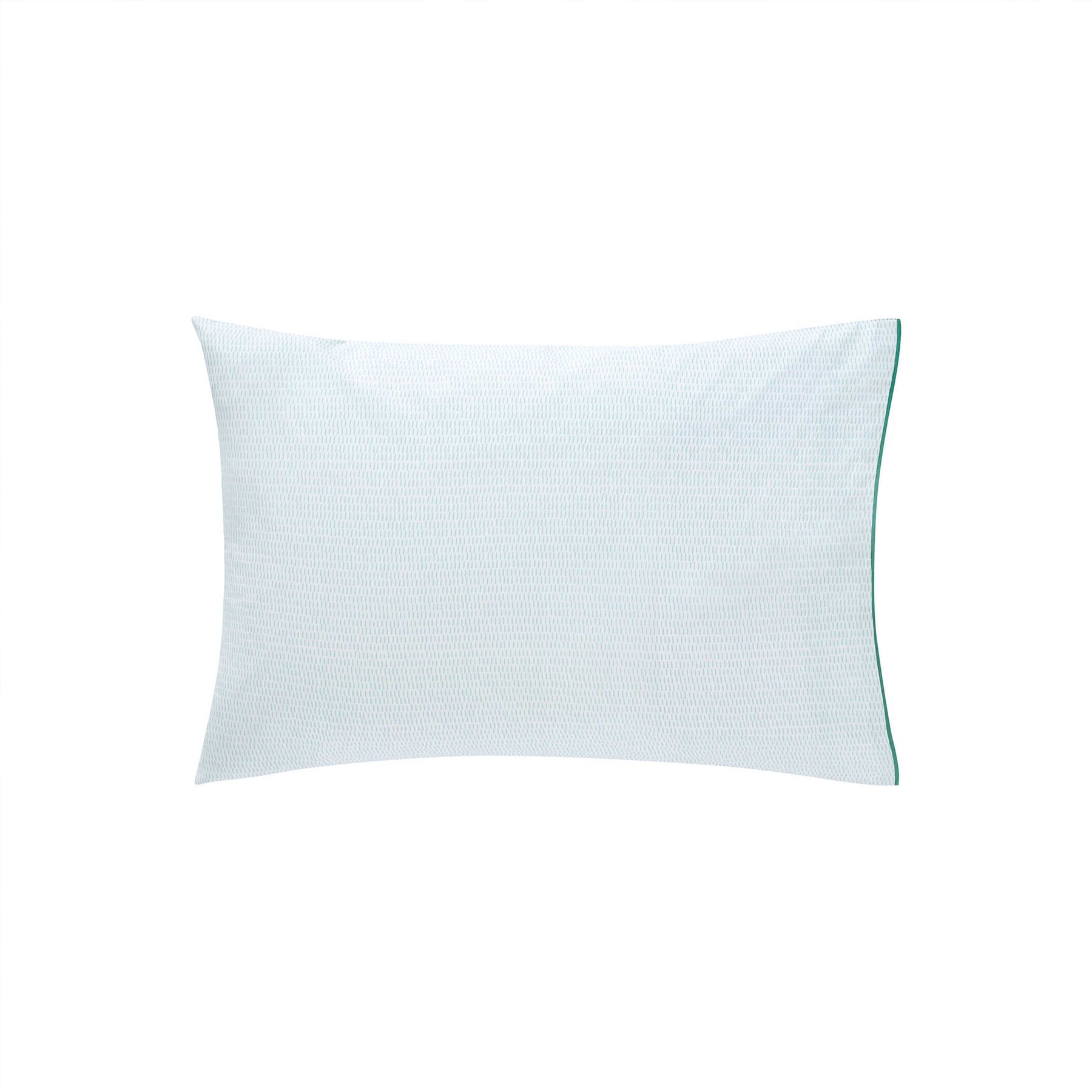 Enchantement shams, flat sheets, and pillowcases are embellished with a green coloured inset trim finishing. Enchantement pillowcases and fitted sheets are made with the small lines print. Percale construction. 100% long-staple combed cotton. Made in France.