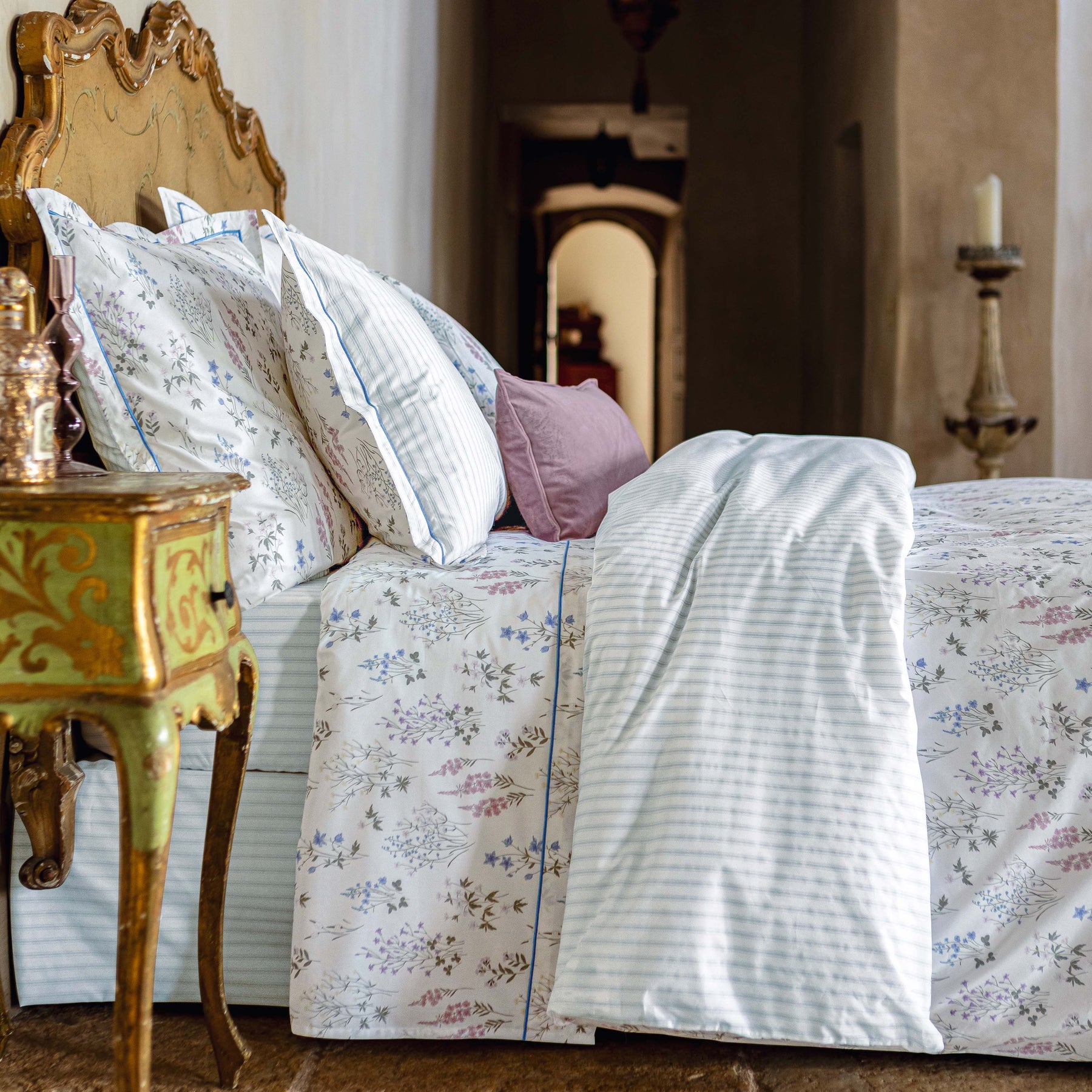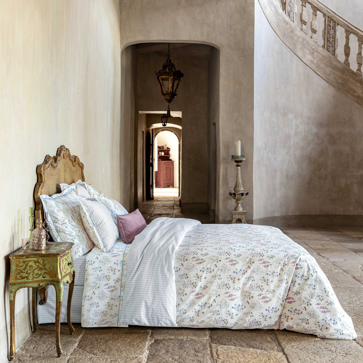 Inspired by the ornaments of Indian palaces, the Éole set invites relaxation with its soft and weathered tones. The duvet cover comes in 2 sizes and features a button closure. It's made of organic long-fiber combed cotton percale with 200 TC (80 threads per sqcm) to guarantee extreme softness and durability. The Easy Care treatment makes ironing easy. For an attractive, harmonious bedroom, try pairing it with other products in this collection.