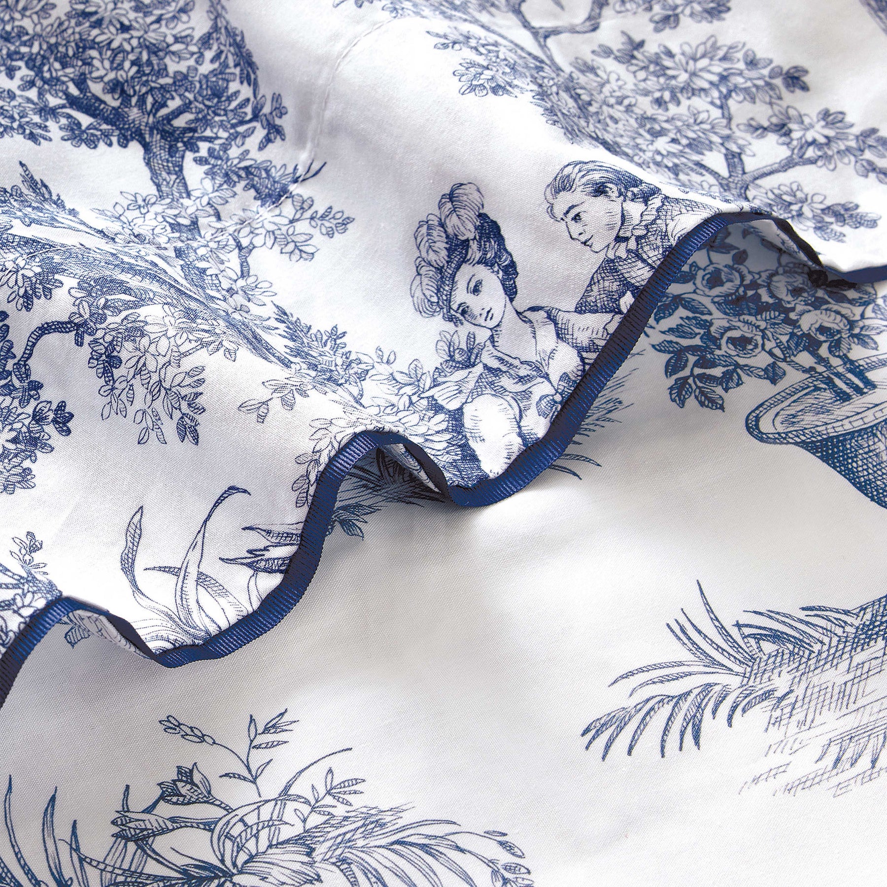 Flat She has the Toile de Jouy print, the other side has the three-lines stripes print. Galante Toile de Jouy bedding print is from a 1780 drawing depicting love and gallantry. Percale construction. 100% Organic, long-staple combed cotton. Made in France.