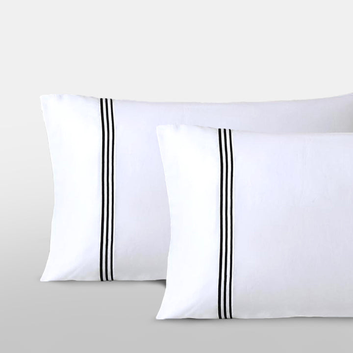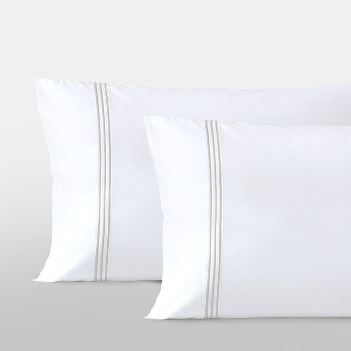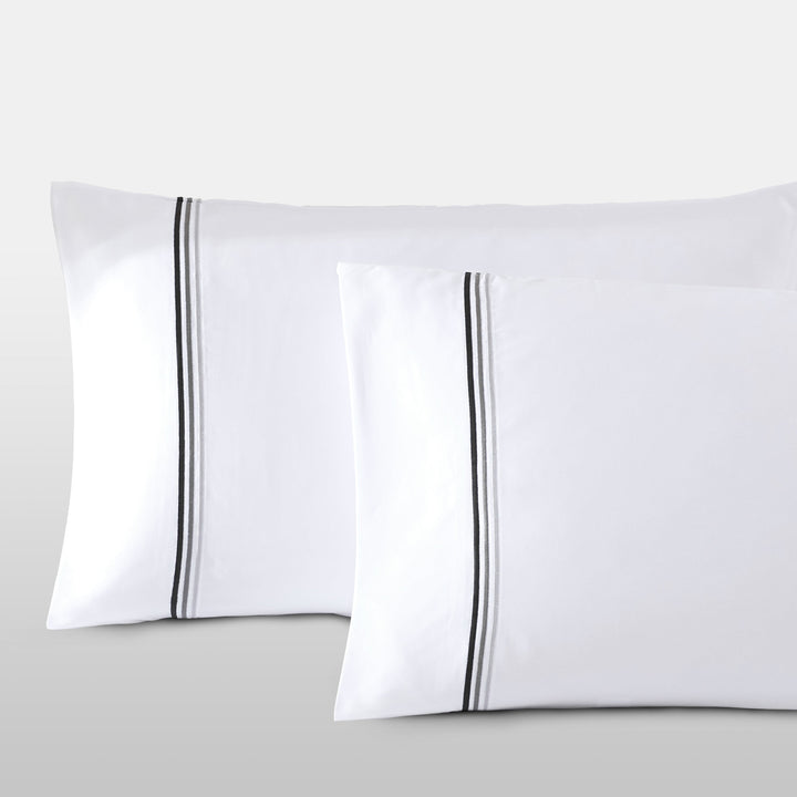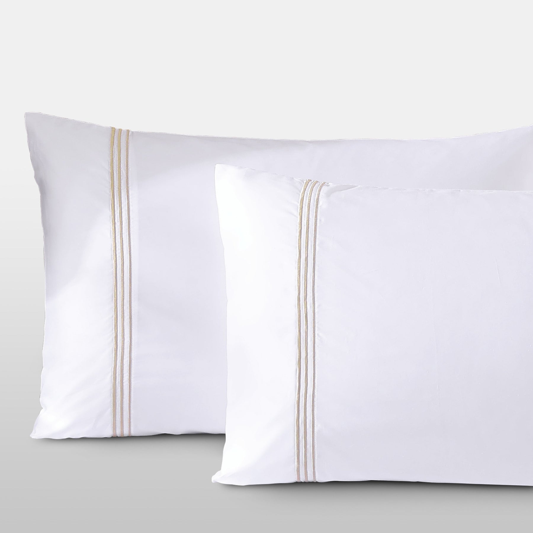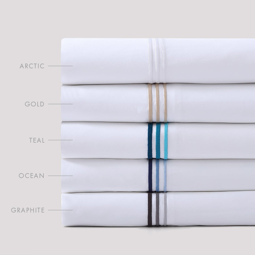 Crafted using extra-long, hand-picked Egyptian cotton fibers, this opulent hotel collection features a sumptuous triple embroidered stitch on our most luxurious, opaque, and softest sateen fabric yet.