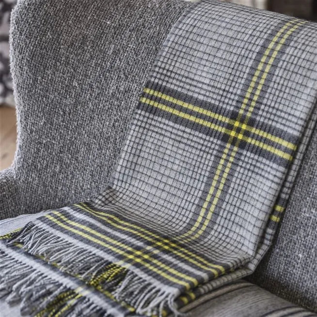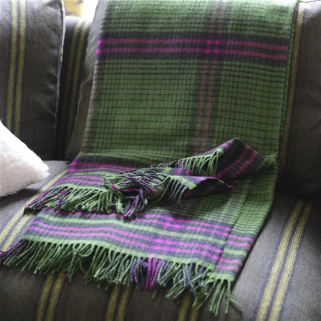 This all-over tartan check pure merino wool throw. This stylish interior throw is woven in Yorkshire at a traditional woollen mill and finished with a fringed edge.
