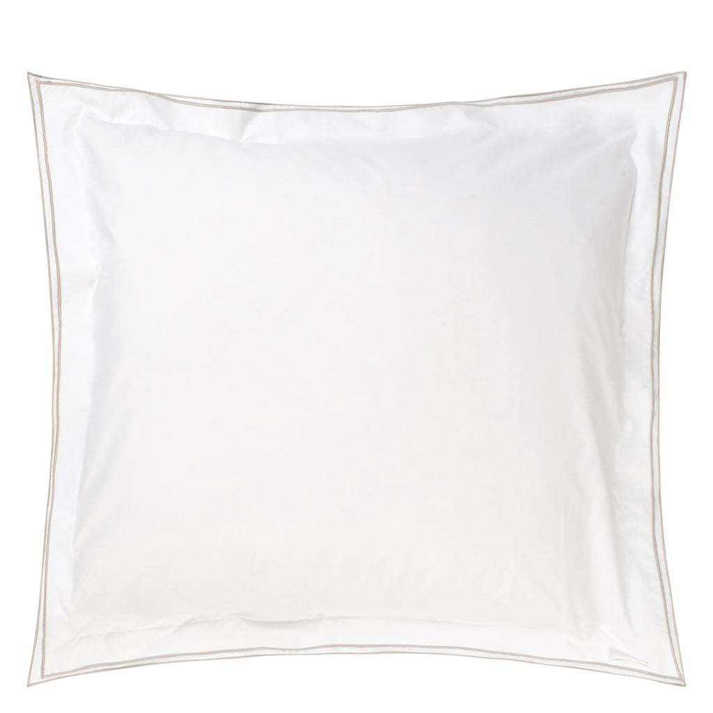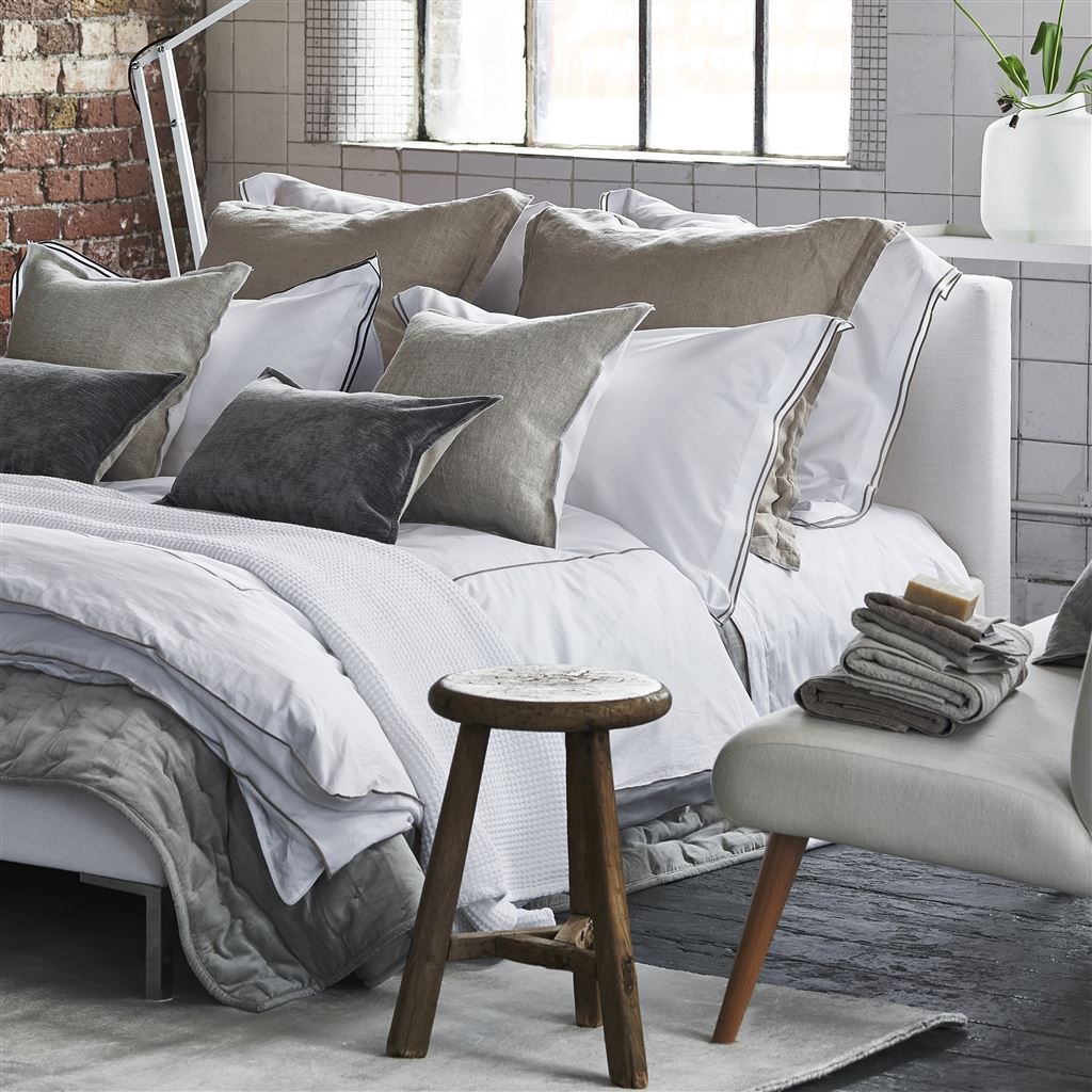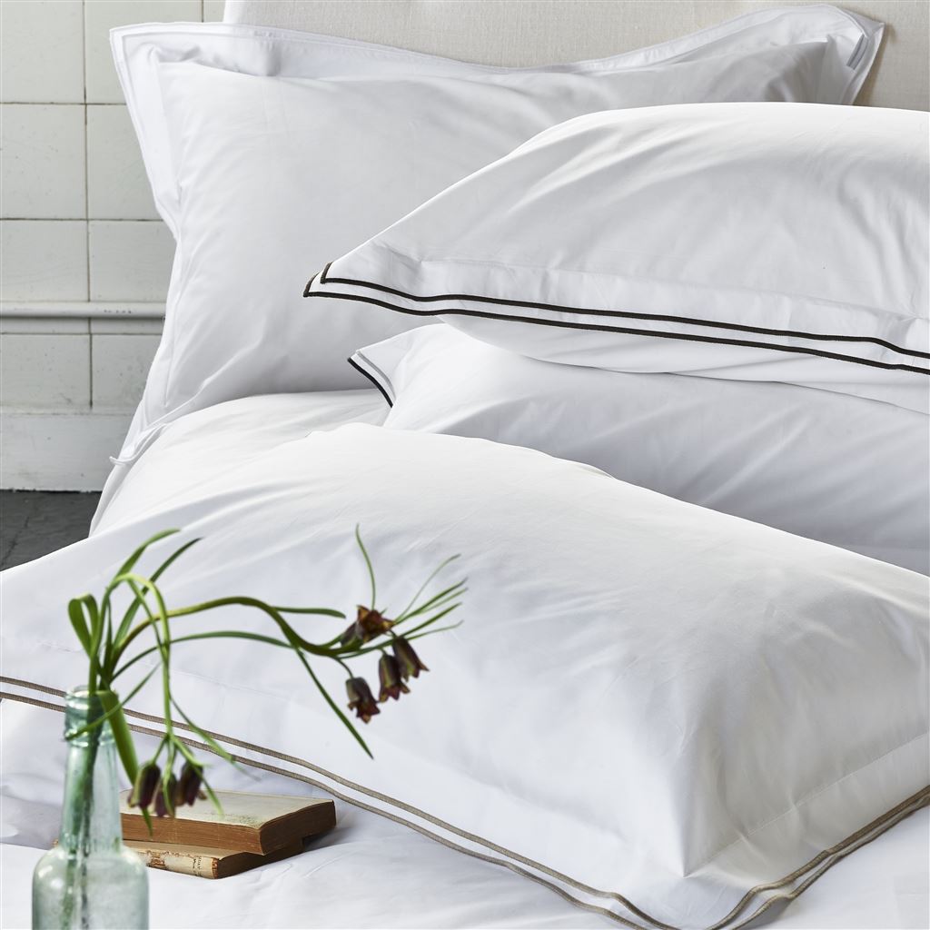 Our beautiful 400 thread count cotton bedding, the quality you would expect in a luxurious hotel. Sophisticated embroidered detailing in natural birch on the double edged sham and repeated on the edge and the middle of the of the duvet cover and the edge of the flat sheet. Five star style for your bedroom.