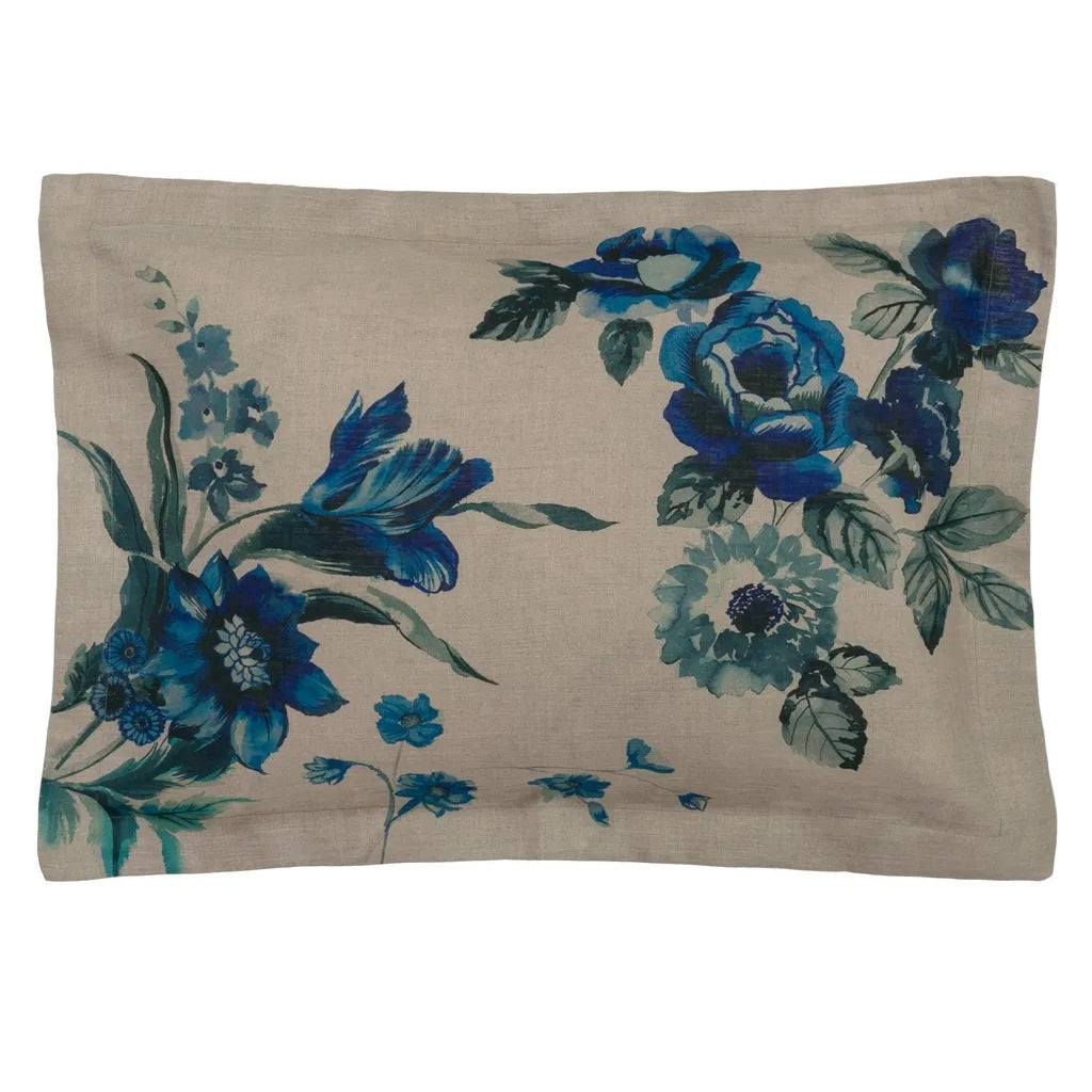 This stunning floral sham takes inspiration from the art of Hirigana painting - a celebration of nature with dramatic inky washed brush strokes in rich cobalt and indigo blue hues, digitally printed onto a luxurious 100% natural linen with a small scale inky floral on the reverse. Shams finished with a smart linen trim detail.