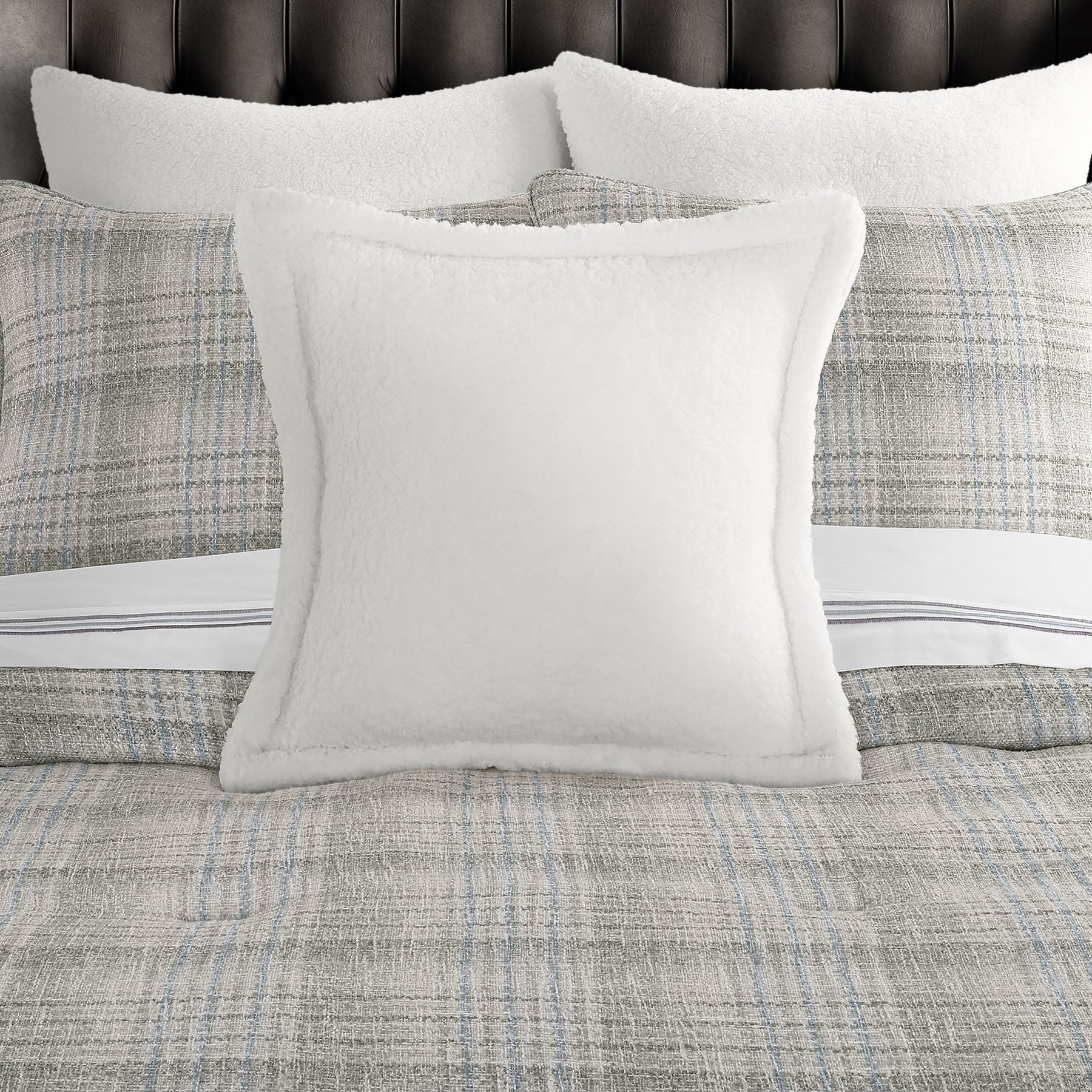 The alejandro 18 inch throw pillow offers a cozy contemporary design that works all-year-round. Featuring a plush white sherpa fabric with a flange trim for a tailored finish. Complete the alejandro collection with the luxurious bedding and window treatments (each sold separately).