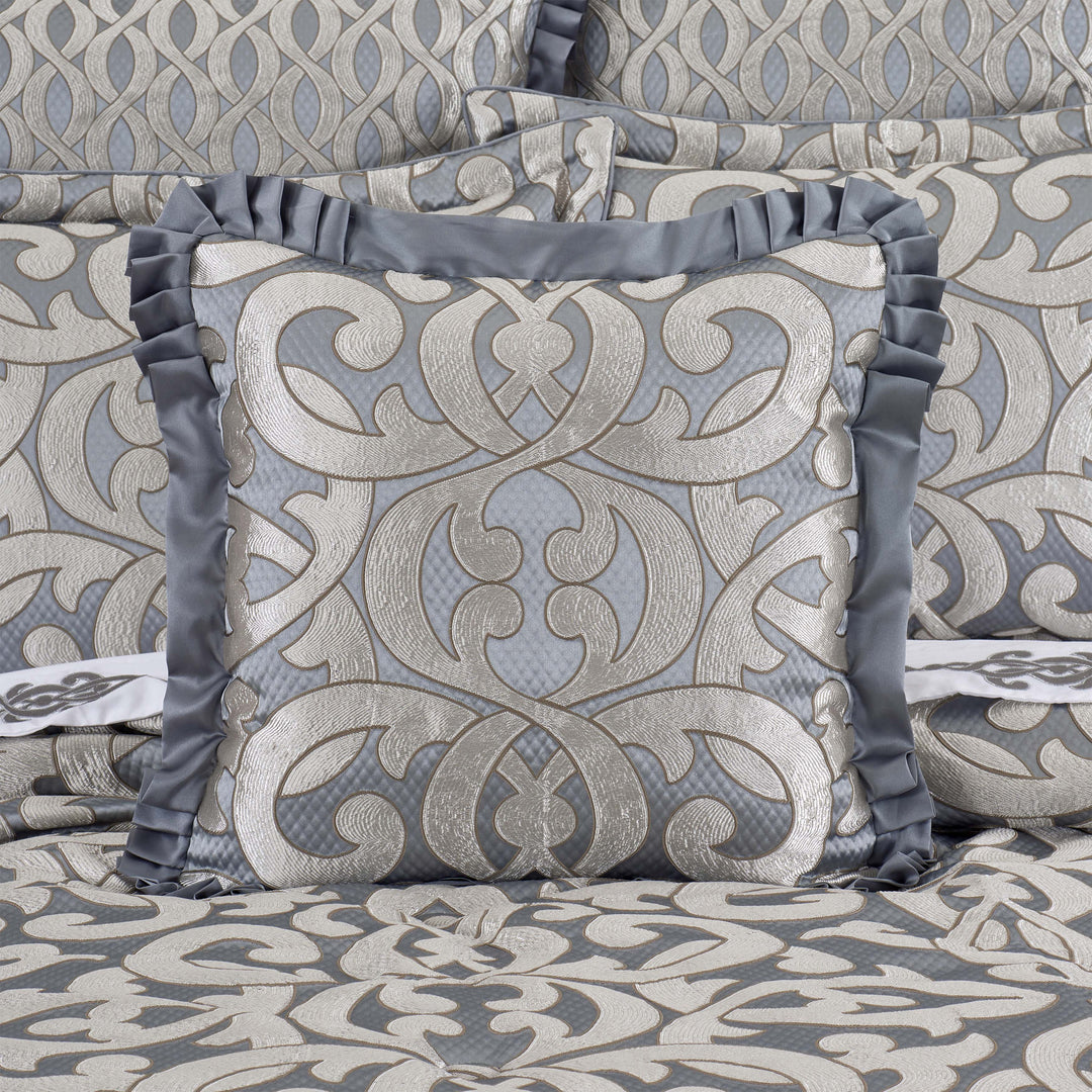 Barocco Sterling Square Embellished Decorative Throw Pillow 20" x 20"
