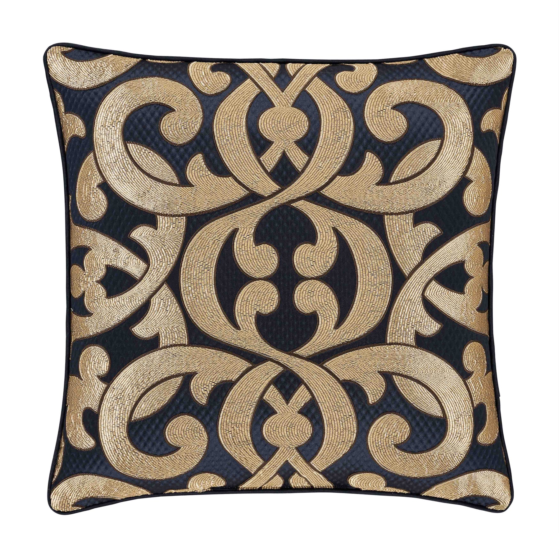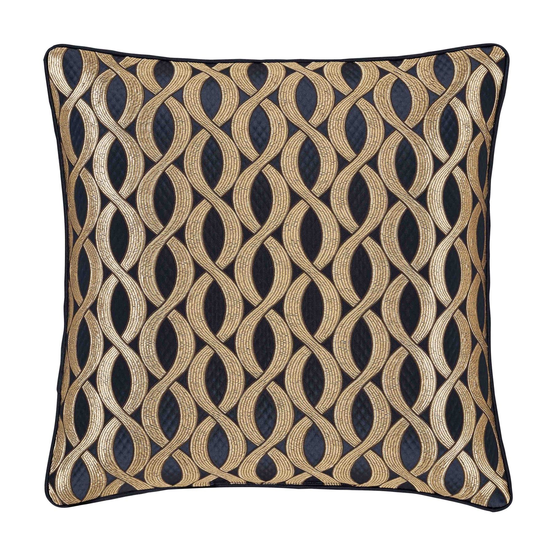 Inspired by modern european elegance, the biagio 20" decorative throw pillow features a bold interlocking woven damask in glimmering gold with a deep navy blue matelasse ground. The pillow reverses to a solid navy satin for versatility when decorating your space. This luxurious accent pillow is recommended to add as the finishing touch to the biagio bedding set.