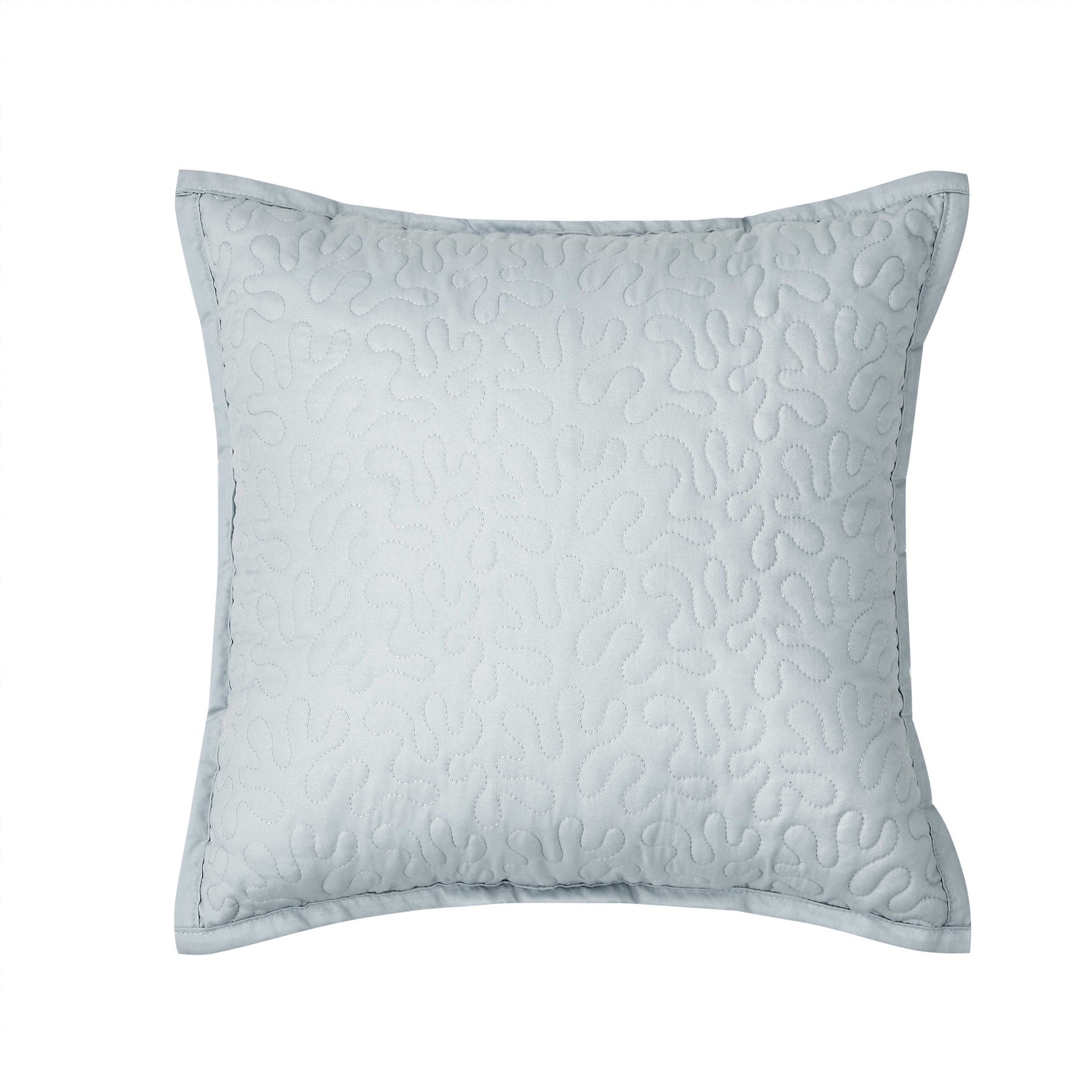 The evergreen 16 inch square decorative throw pillow is quilted on a lightly brushed solid blue microfiber with a vermicelli quilted pattern. This fresh accent pillow is finished with self-fabric piping and layers perfectly with the evergreen bedding ensemble and window treatments to complete the look.