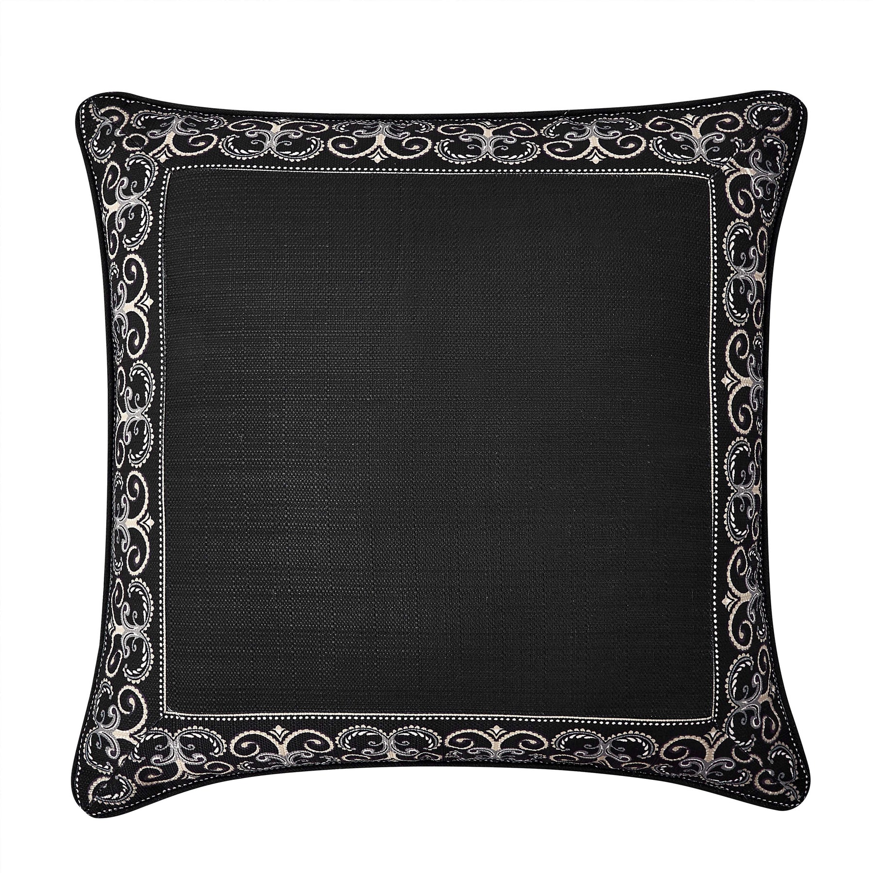 The messina euro sham beautifully accents you bedding décor with a stunning reversible backdrop. Designed with a plush black fabric in the center, the outer border is framed with a medallion border in black and grey tones. The reverse of the euro is finished with a solid black texture and a hidden zipper closure along the edge, making it the perfect finishing piece to the messina bedding set. (each sham sold separately).