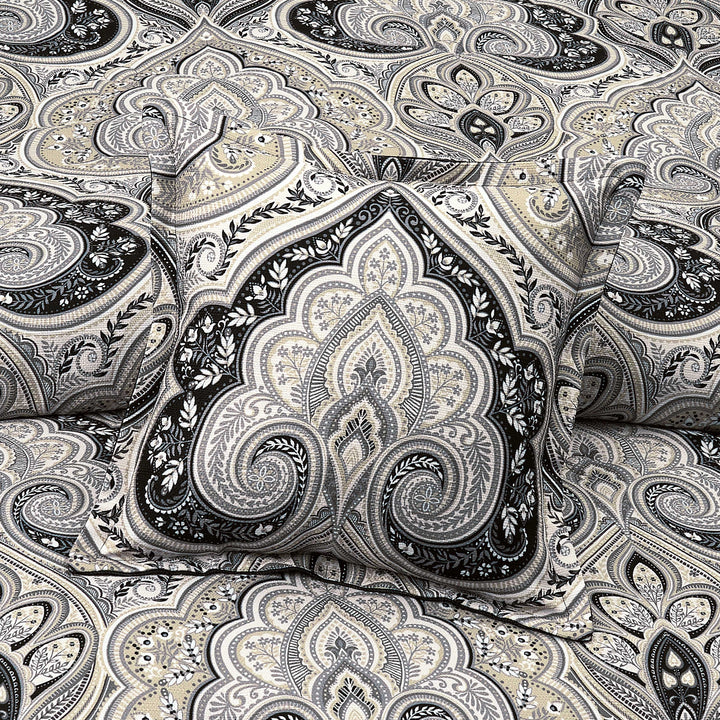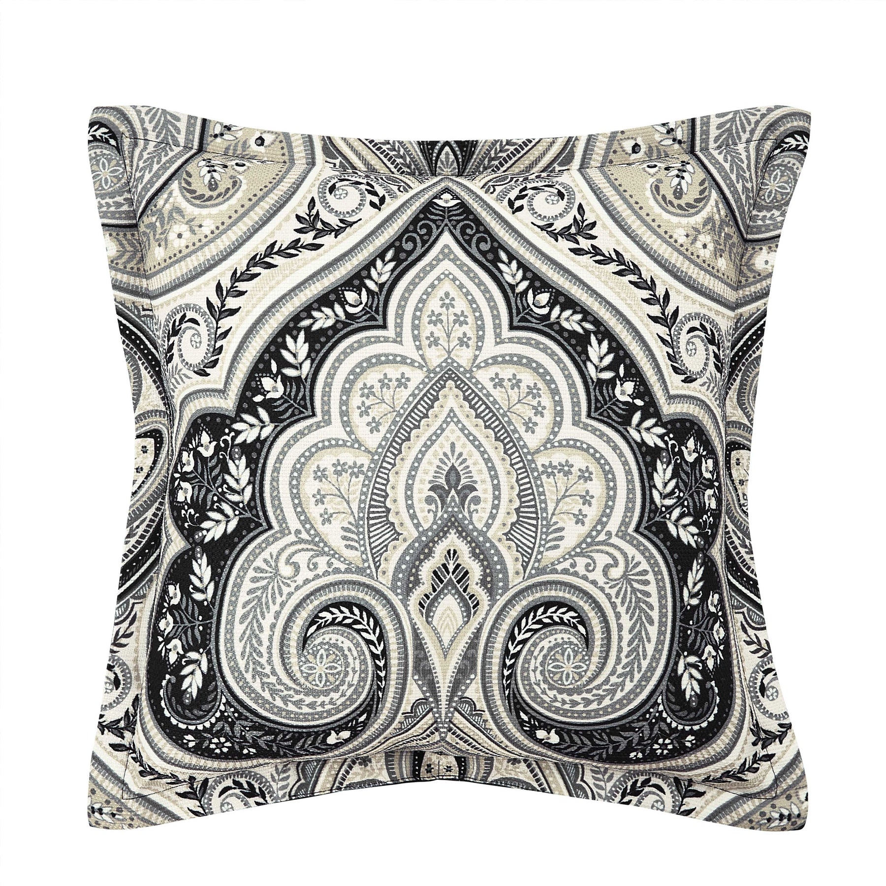 The messina 18 inch decorative throw pillow features a timeless damask perfectly centered. The dramatic woven damask pattern is crafted with a silver and black color combination and it reverses to a solid black brushed fabric with a flange trim for added versatility and a tonal feel. Pair this luxe accent pillow with the messina comforter set for a complete elegant look.