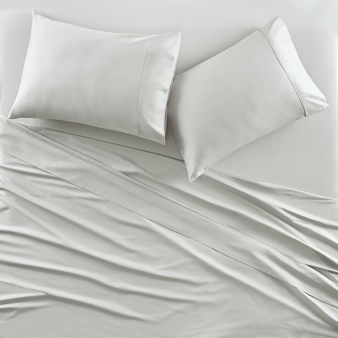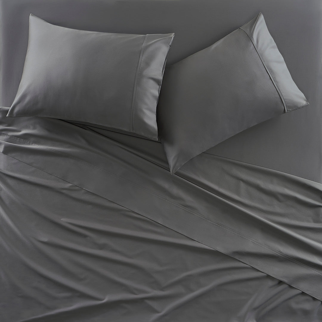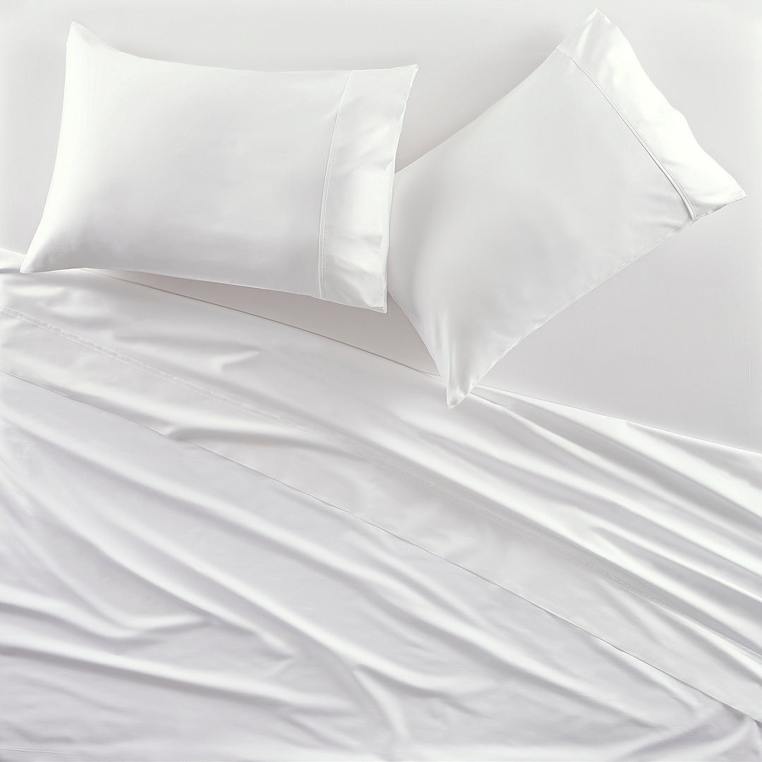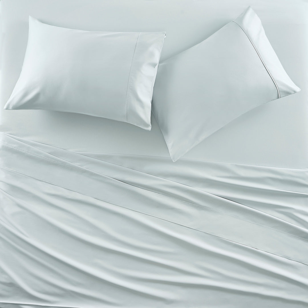 Indulge in modern luxury with the Premier Cotton Sateen Sheets. Experience the ultimate in comfort with our soft & silky sateen weave, which is OEKO-TEX and certified, designed with the highest standards to feel incredibly smooth and safe against your skin. The natural sheen adds a touch of elegance, offering a polished look without the use of synthetic additives. Our breathable, moisture-wicking fabric ensures a cool and comfortable night€™s sleep. Crafted for durability, the tight weave provides long-lasting wear while maintaining a lightweight feel. Quality craftsmanship is seen throughout each component of the set, such as the deep pocket fitted sheet that fits up to a 20" mattress, a 5" folded hem treatment on the flat sheet, and pillowcases with a European closure and 5€� hem. Sheet set includes 1 flat sheet, 1 fitted sheet, and 2 pillowcases.