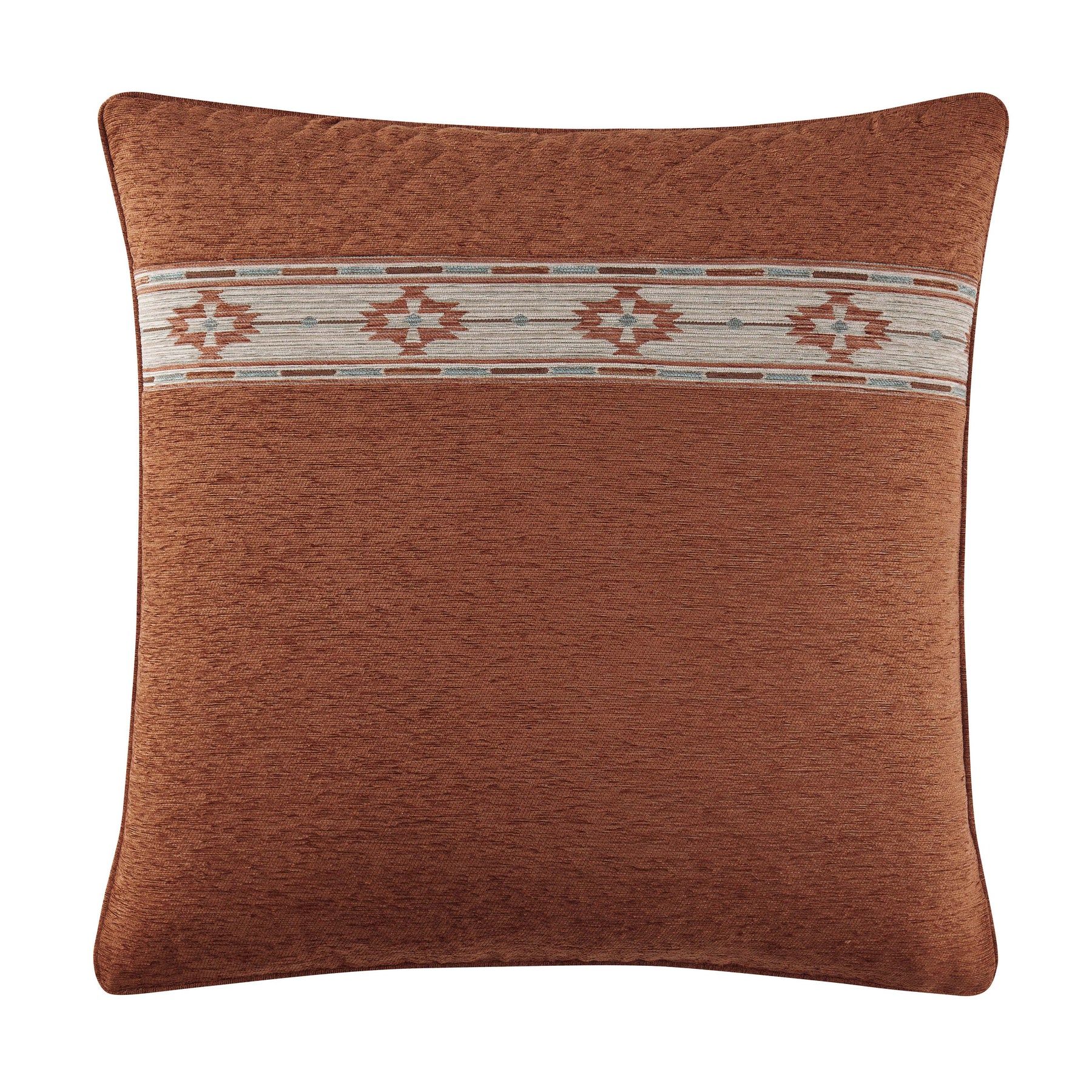 The jackson lodge euro sham features layers of detail to add the finishing touch to your bedding. The plush velvet clay chenille fabric is quilted and embroidered with a southwest inspired band in shades of sand and turquoise. It's corded all-around with a hidden zipper closure, allowing you to reverse the sham. Pair this pillow sham with the jackson lodge bedding and window treatments to complete the ensemble.