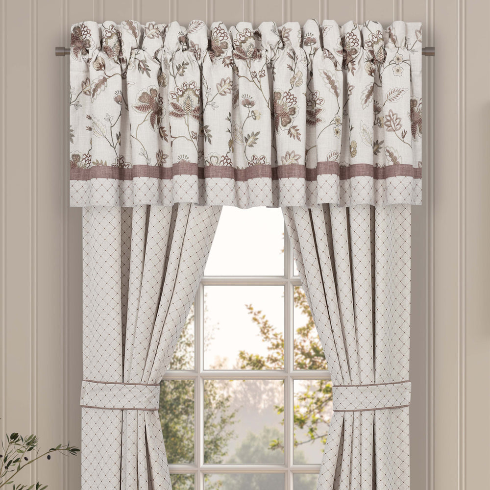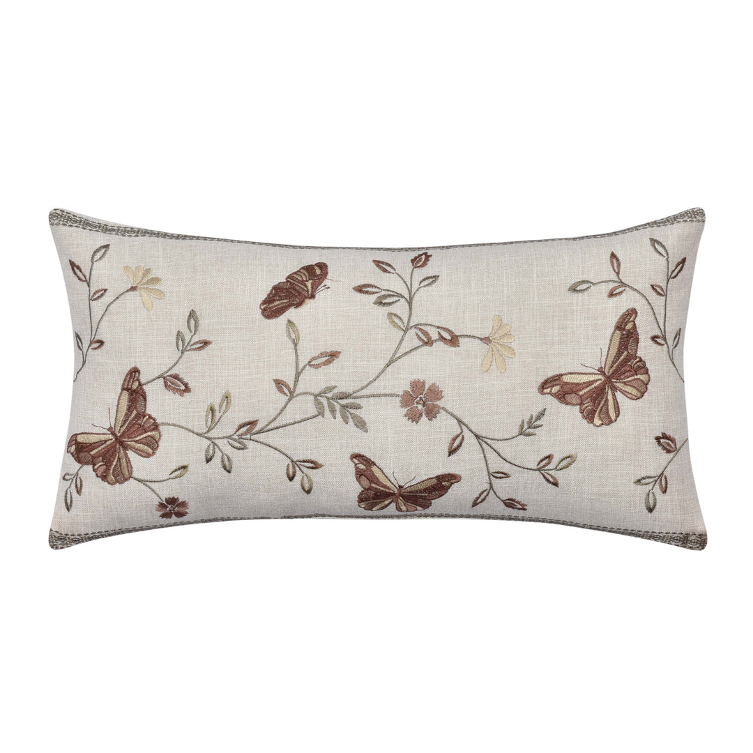 features a solid textured faux linen, framed and mitered on four sides with an intricately embroidered floral stripe design